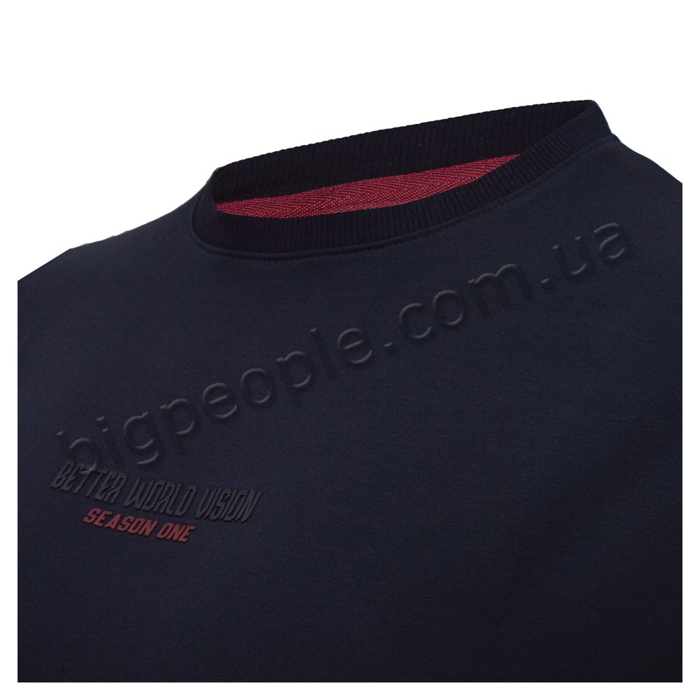 Футболка з довгим рукавом TURHAN для великих чоловіків. Колір темно-синій. Попереду принт. Низ на резинці. Виробництво Туреччина. Склад cotton (бавовна) 95%, еластан5%.