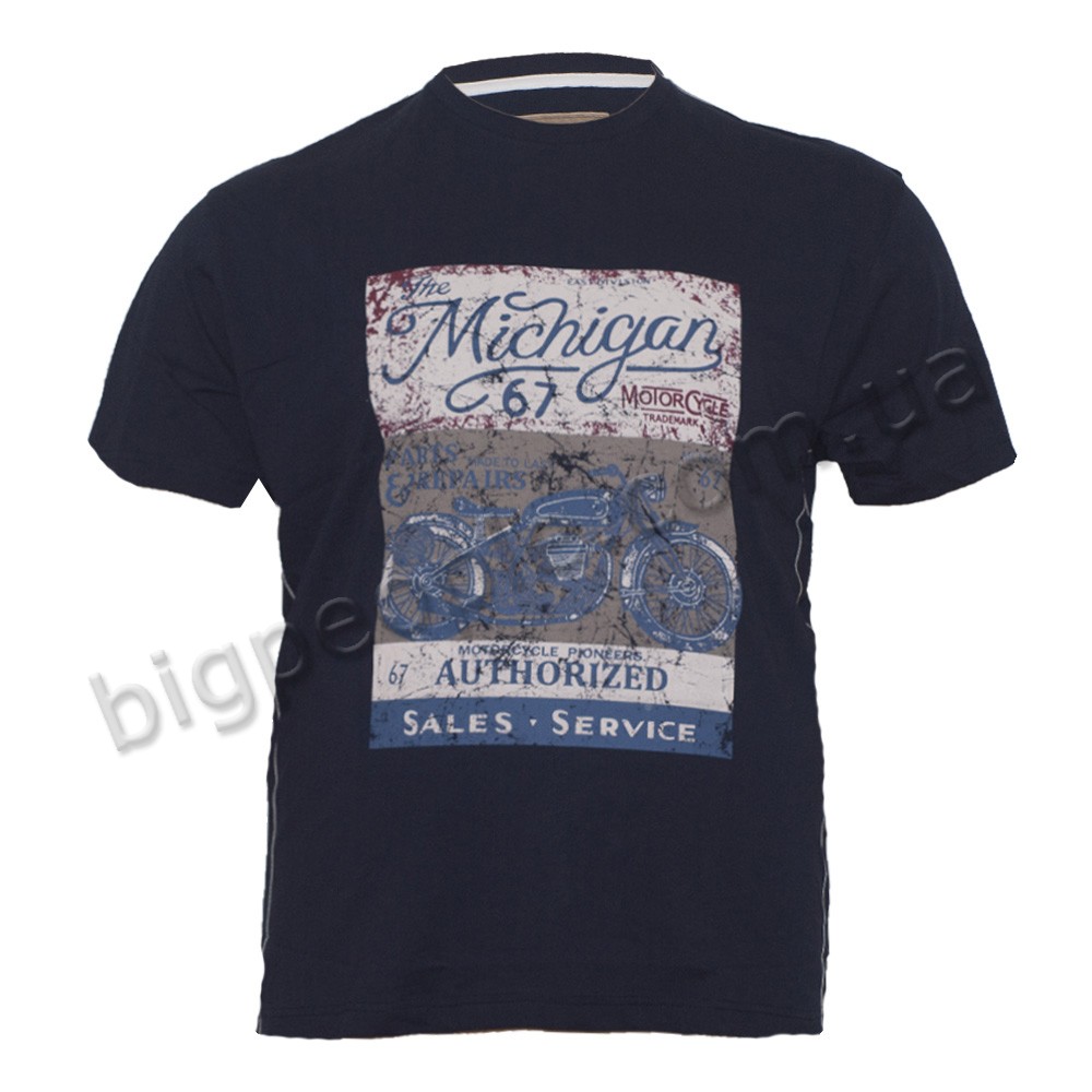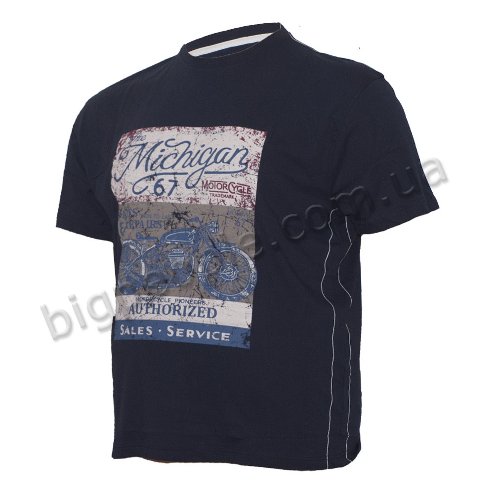 Темно-синя чоловіча футболка виробника POLO PEPE з оригінальним принтом Michigan motorcycle. Виробництво Туреччина. Склад cotton (бавовна) 100%.