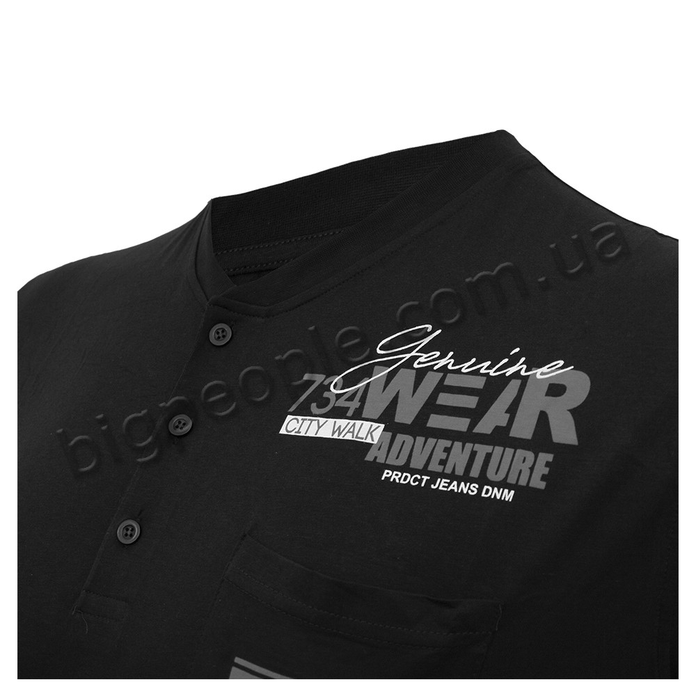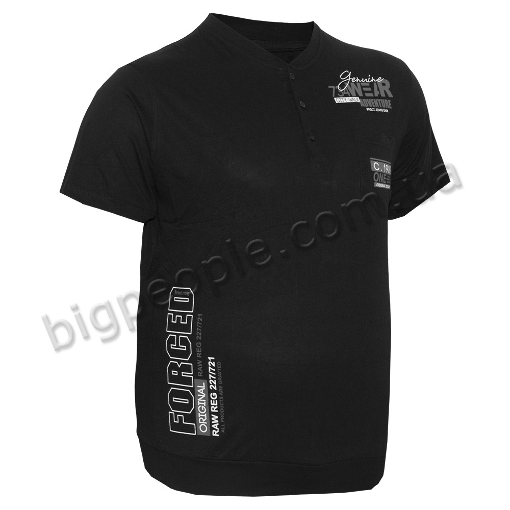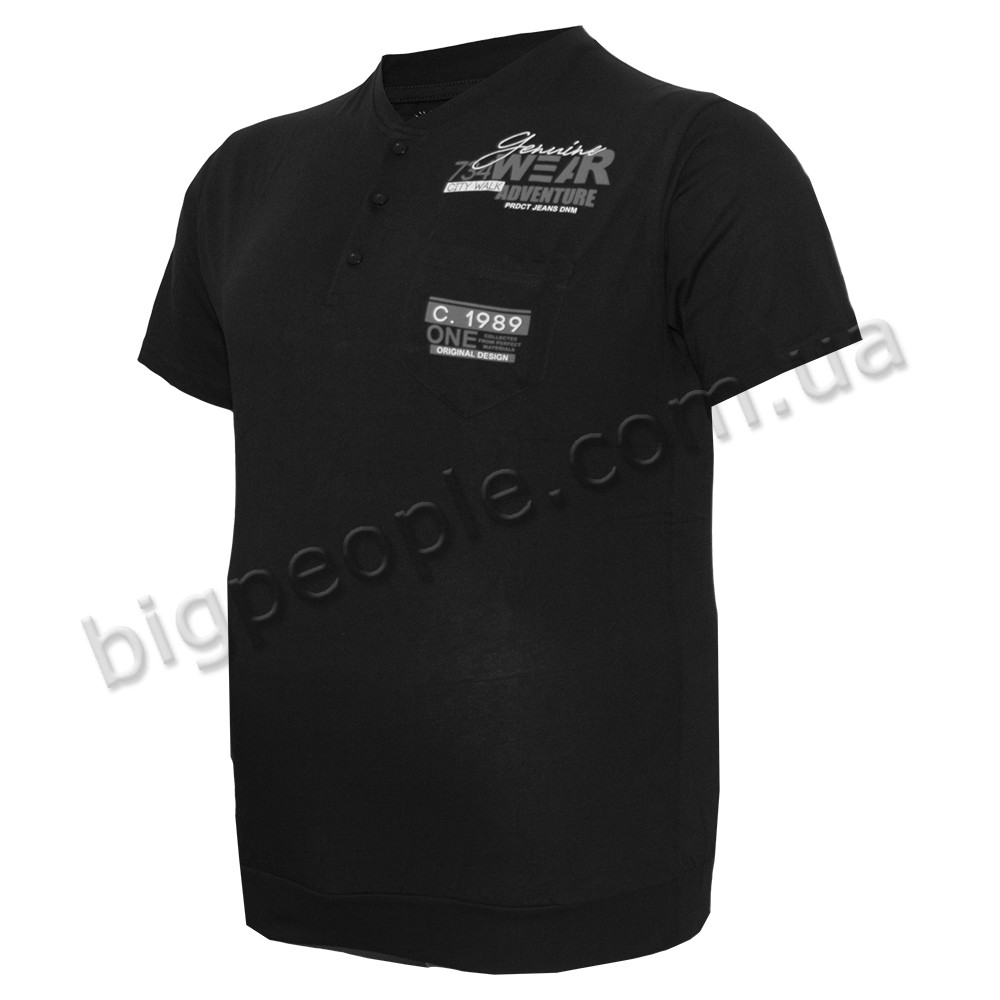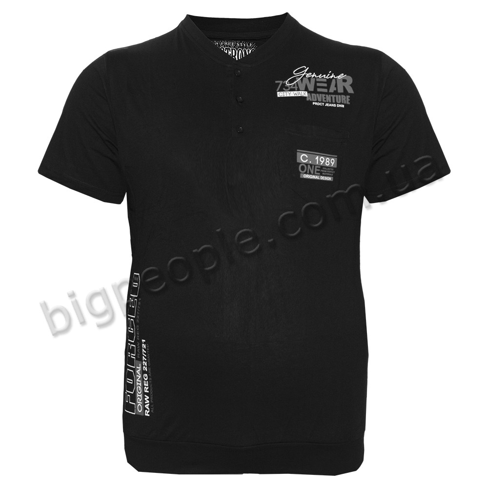 Чорна футболка поло великого розміру ARMSTRONG, легка тонка літня тканина. На грудях вишивка і карман, знизу манжет. Комір виконаний з трьома гудзиками. Виробництво Туреччина. Склад cotton (бавовна) 95%, еластан 5%.