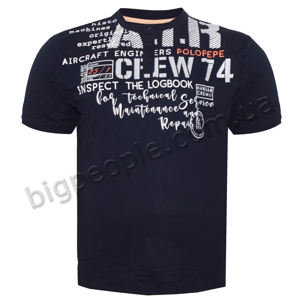 Темно-синя пряма (без манжета) внизу футболка поло великого розміру POLO PEPE, легка тонка літня тканина. На грудях вишивка. Комір виконаний з трьома гудзиками. Виробництво Туреччина. Склад cotton (бавовна) 100%.