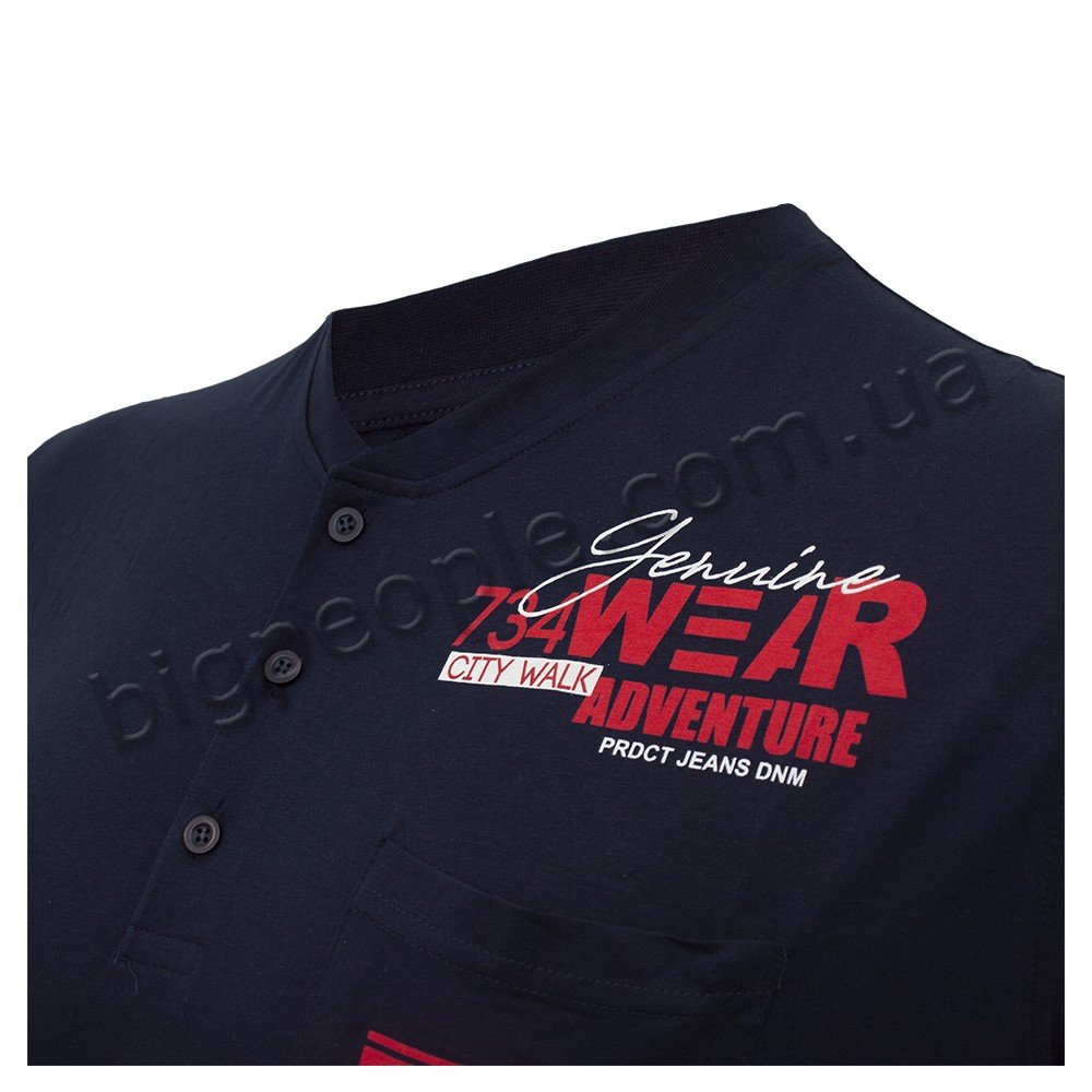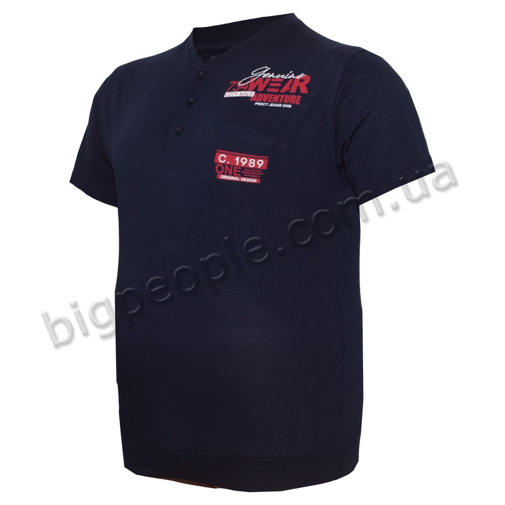 Темно-синя футболка поло великого розміру ARMSTRONG, легка тонка літня тканина. На грудях вишивка і карман, знизу манжет. Комір виконаний з трьома гудзиками. Виробництво Туреччина. Склад cotton (бавовна) 95%, еластан 5%.