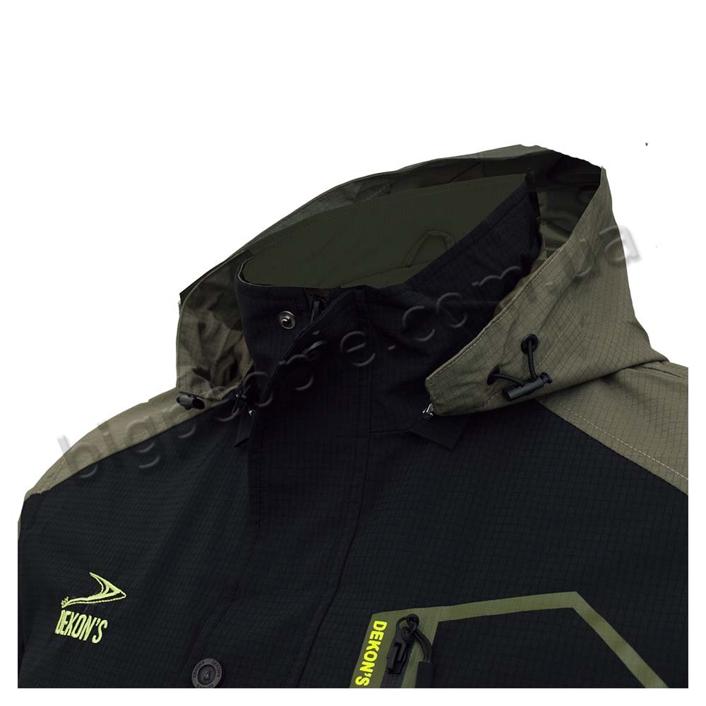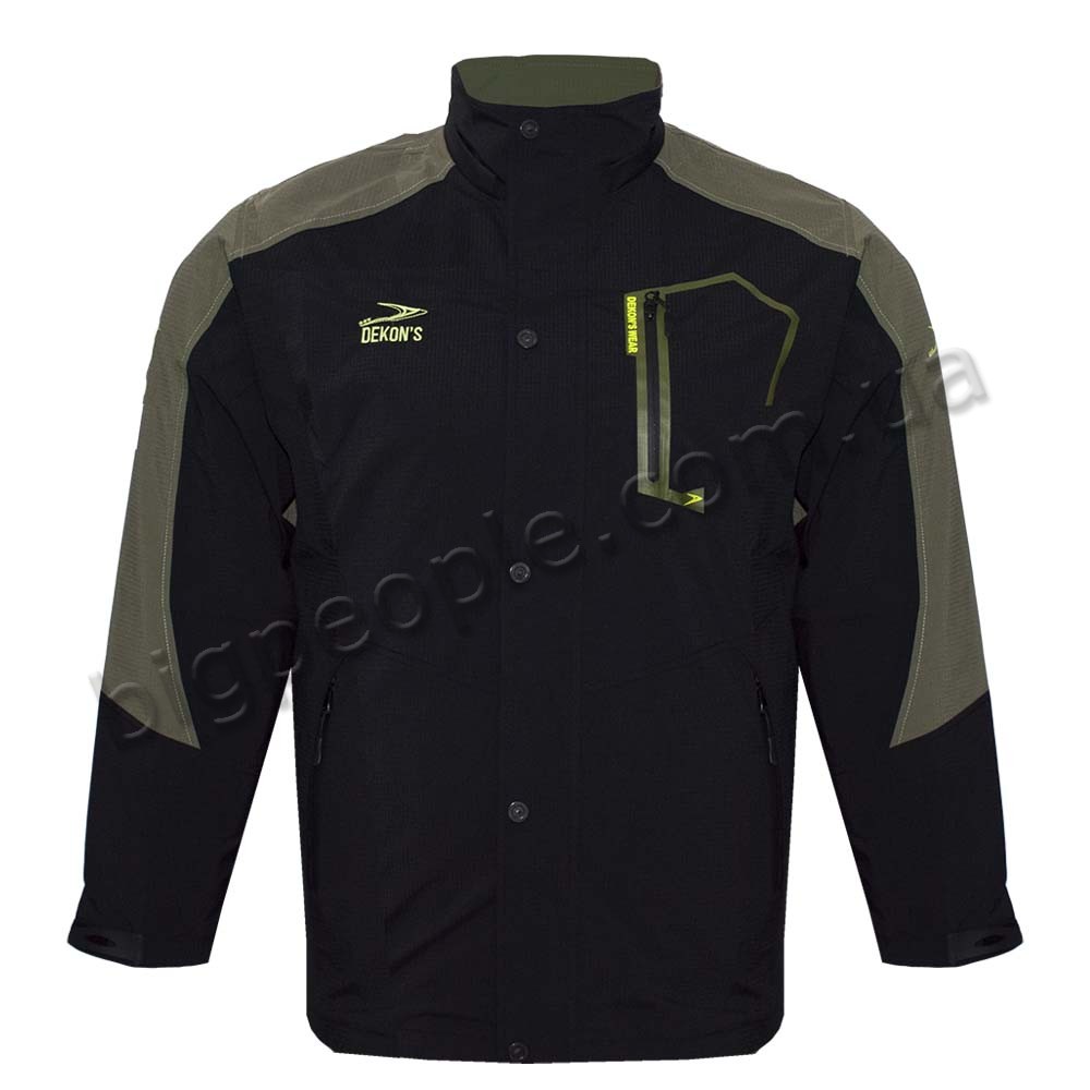 Чорна тонка чоловіча куртка вітровка великого розміру (дощовик) DEKONS. Низ прямий, з боків знаходяться стяжки. Підкладка у вигляді сітки. Світловідбиваючі блискавки і нашивки. Сезон осінь-весна. Капюшон знімається. Є попереду три кишені на блискавці і одна всередині. Виробництво Туреччина. Склад: поліестер 100%.