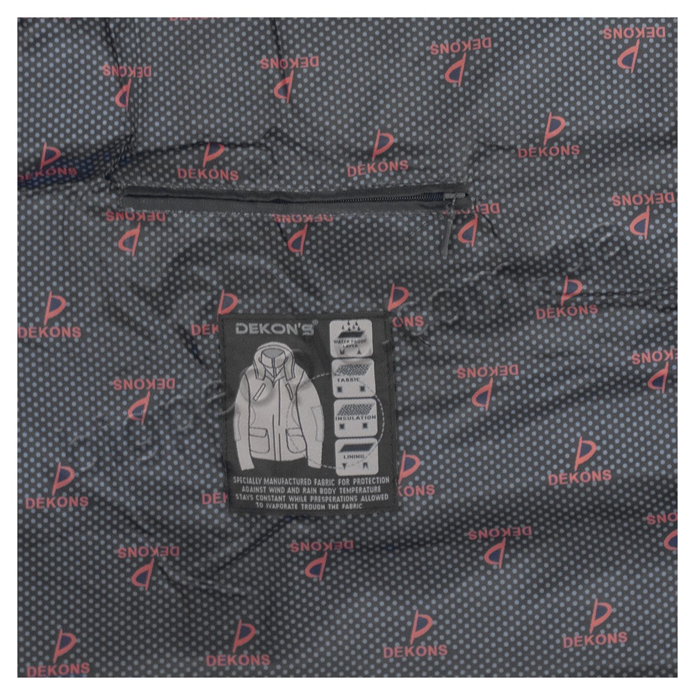 Чорна чоловіча утеплена куртка DEKONS. Низ прямий. Є утеплювач синтепон. Сезон єврозима. Каптур знімається. Є попереду чотири кишені на блискавці та дві всередині. Виробництво Туреччина. склад: поліестер 100%.