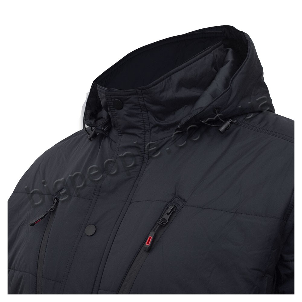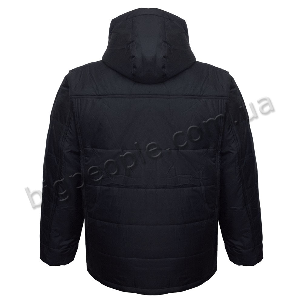 Чорна зимова (єврозима) чоловіча куртка великого розміру, бренд - DEKONS. Виріб пошитий з плащової тканини, як підкладка використовується синтепон. Низ прямий, з боків знаходяться стяжки. Каптур знімається. Є попереду 4 кишені на блискавці та 2 кишені всередині. У рукавах усередині є в'язані манжети. Виробництво Туреччина. Склад: плащівка, синтепон – поліестер 100%.