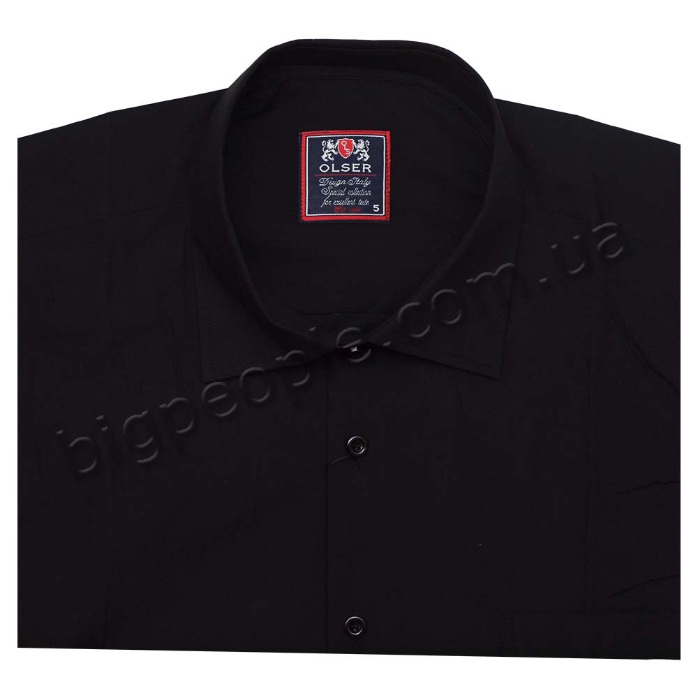 Чорна чоловіча сорочка великого розміру з довгим рукавом OLSER. Сорочка на грудях має кишеню. Виробництво Туреччина. Склад: 85% cotton (бавовна), 15% поліестер.