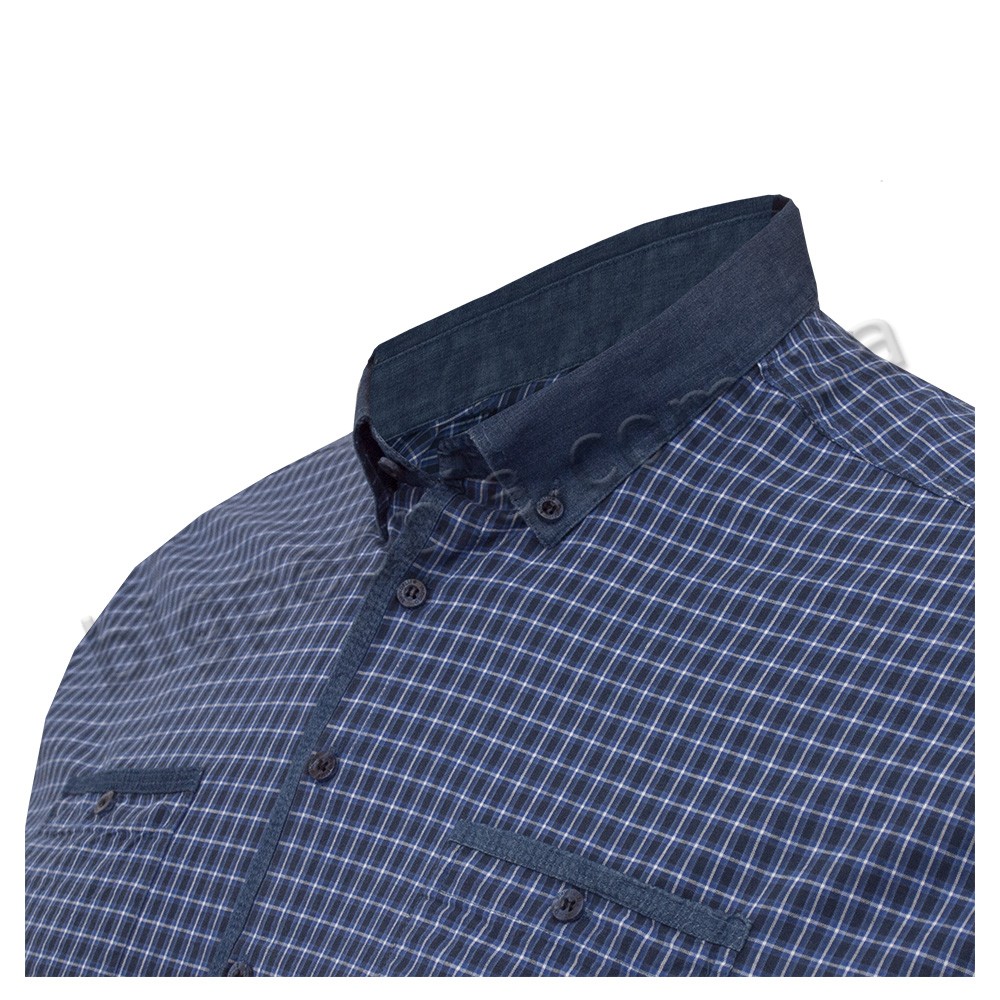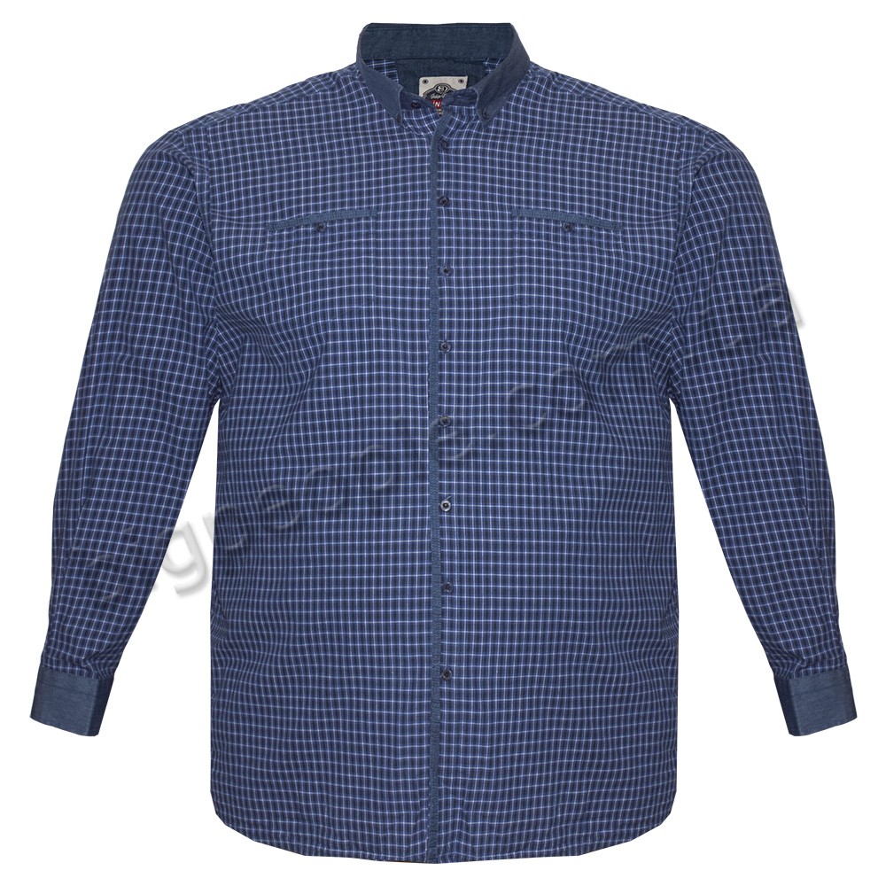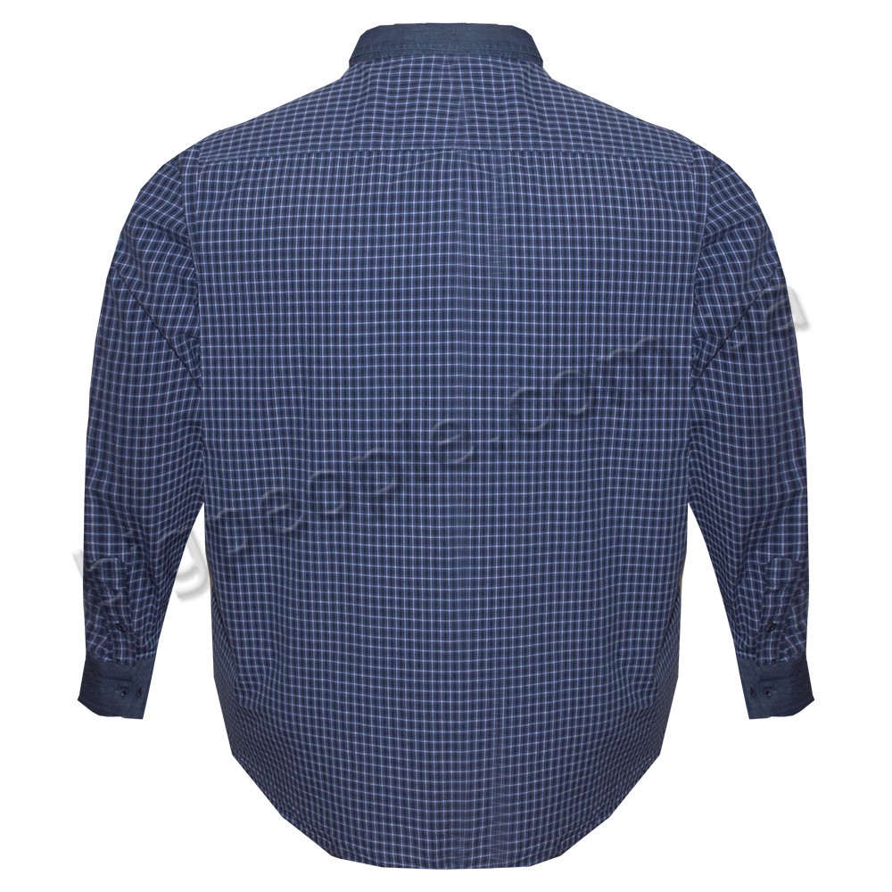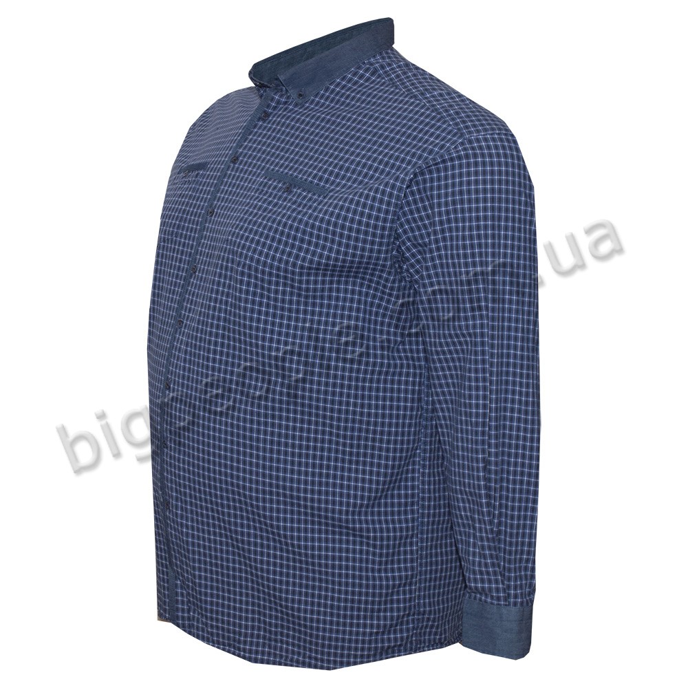 Сорочка великого розміру BIRINDELLI з довгим рукавом, темно-синя в клітку. Є дві кишені на грудях. Джинсовий комір, джинсова обробка манжетів рукавів і кишень. Склад бавовна 100%. Виробництво Туреччина.