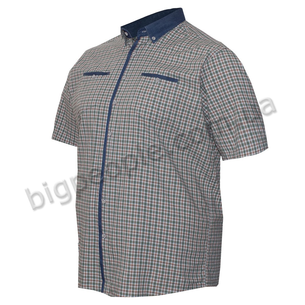 Сорочка великого розміру BIRINDELLI з коротким рукавом. Колір синій. Комір та манжети на рукавах джинсові. Дві кишені на грудях. Склад бавовна 100%. Виробництво Туреччина.
