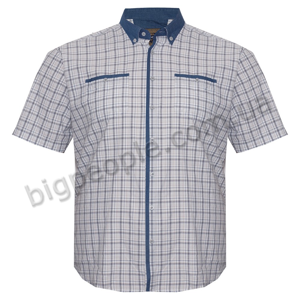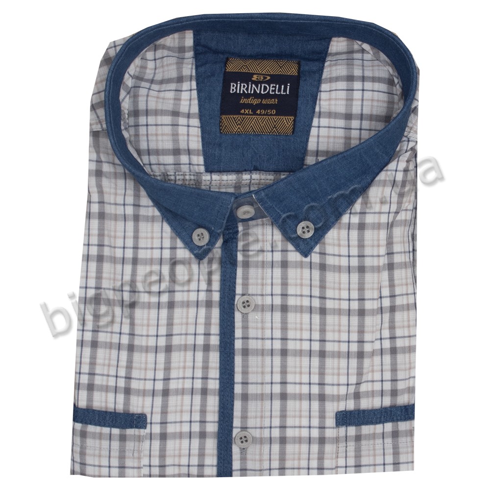Сорочка великого розміру BIRINDELLI з коротким рукавом. Колір комбінований. Комір та манжети на рукавах джинсові. Дві кишені на грудях. Склад бавовна 100%. Виробництво Туреччина.