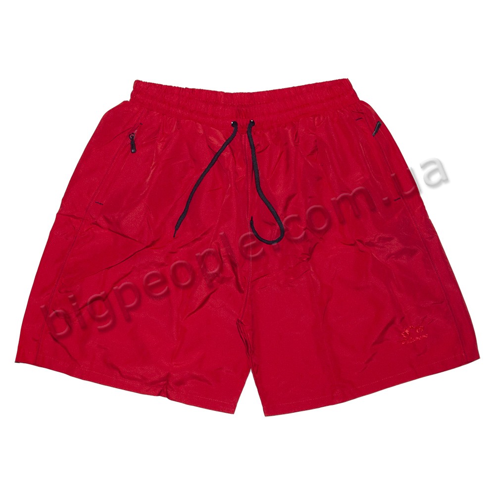 Великі червоні плавальні шорти для чоловіків POLO PEPE. Колір червоний. На поясі передбачена гумка і шнурок для затягування. На шортах дві кишені спереду і одна кишеня на липучці ззаду. Всередині виробу є сітка шортиками. Склад: 100% поліестер. Виробництво Туреччина.