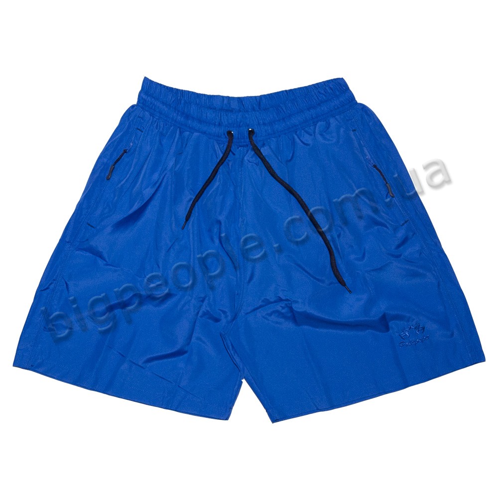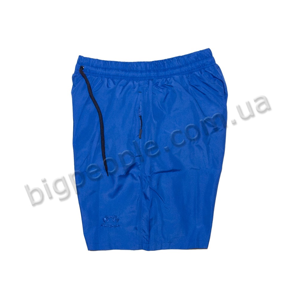 Великі сині плавальні шорти для чоловіків POLO PEPE. Колір синій. На поясі передбачена гумка і шнурок для затягування. На шортах дві кишені спереду і одна кишеня на липучці ззаду. Всередині виробу є сітка шортиками. Склад: 100% поліестер. Виробництво Туреччина.