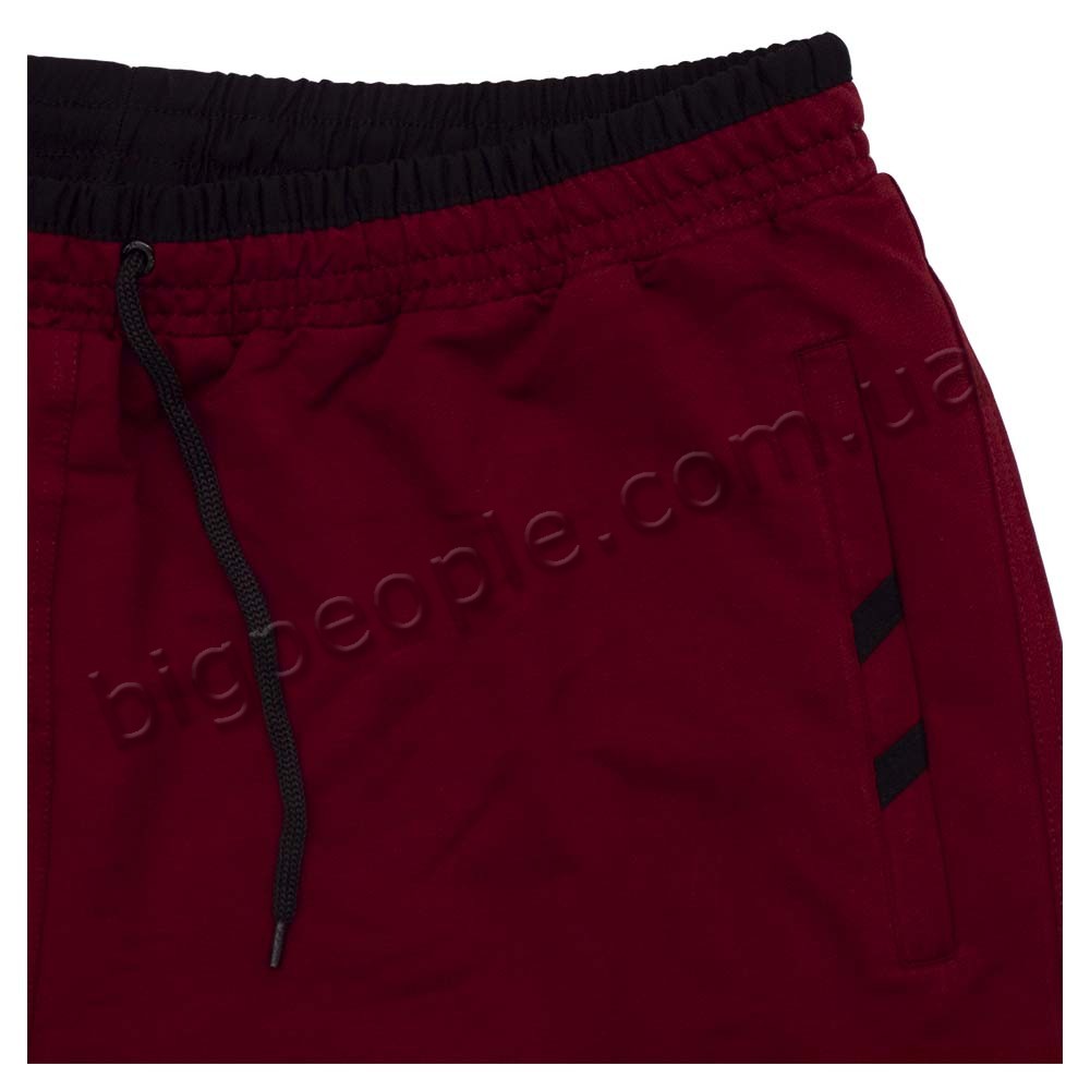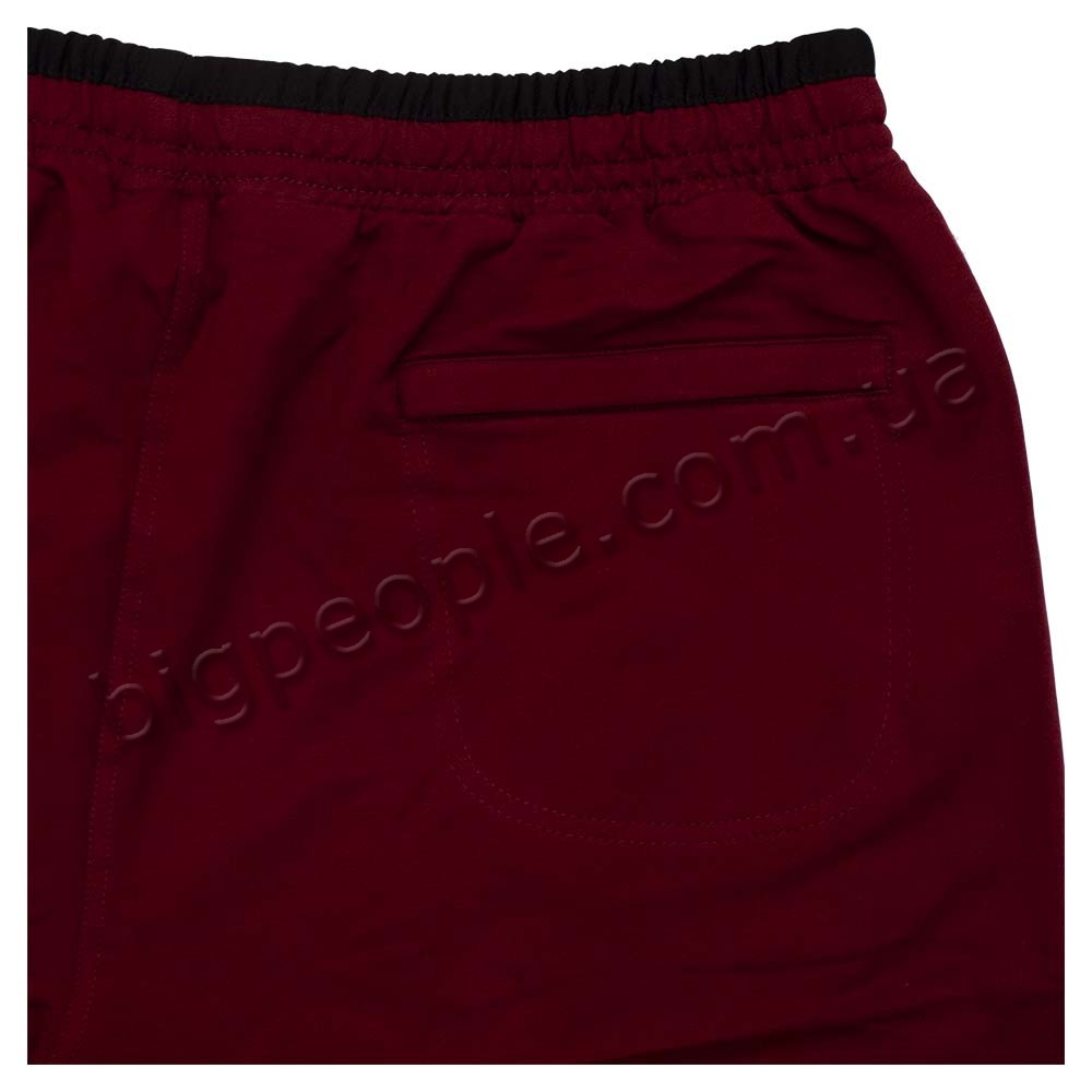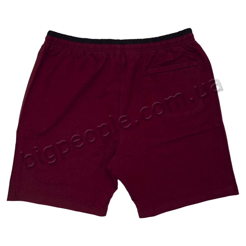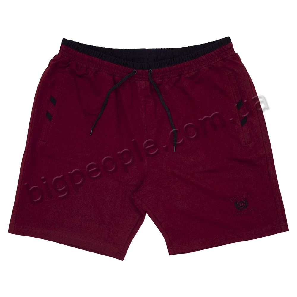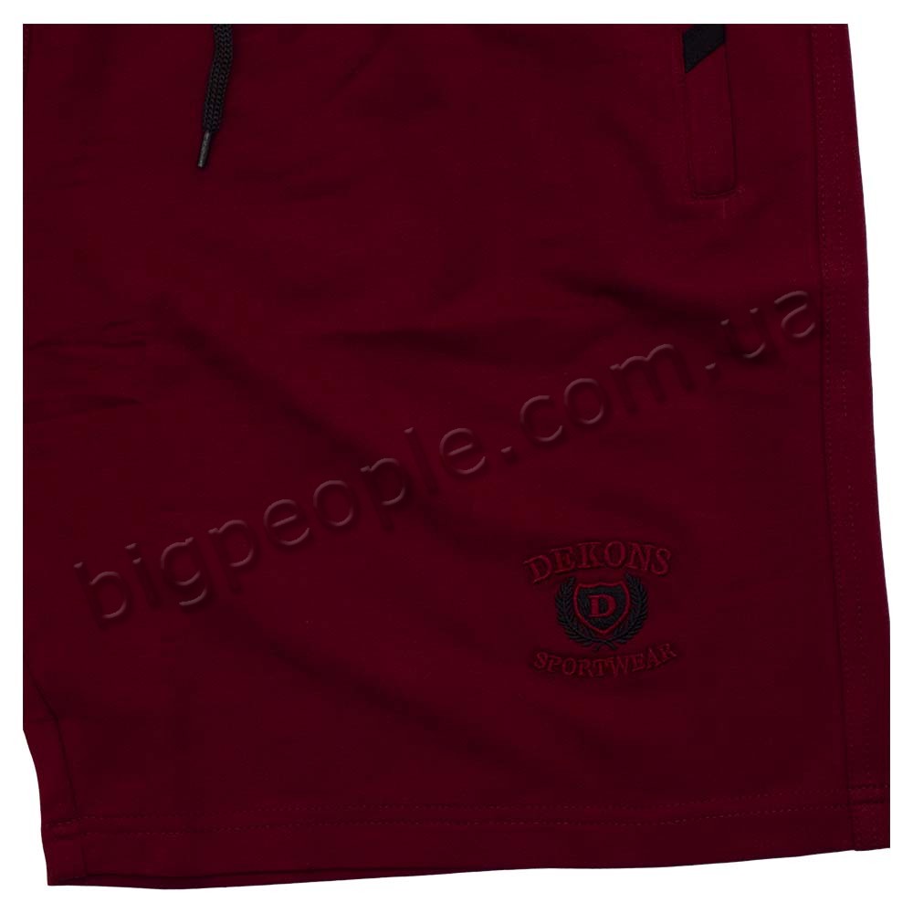 Трикотажні шорти DEKONS для великих чоловіків. На моделі є дві кишені на блискавці з боків і одна кишеня ззаду. Виробництво Туреччина. Колір бордовий. Вгорі і на кишенях чорна обробка. Склад: трикотаж (соттон 60%, поліестер 30%, еластан 10%).