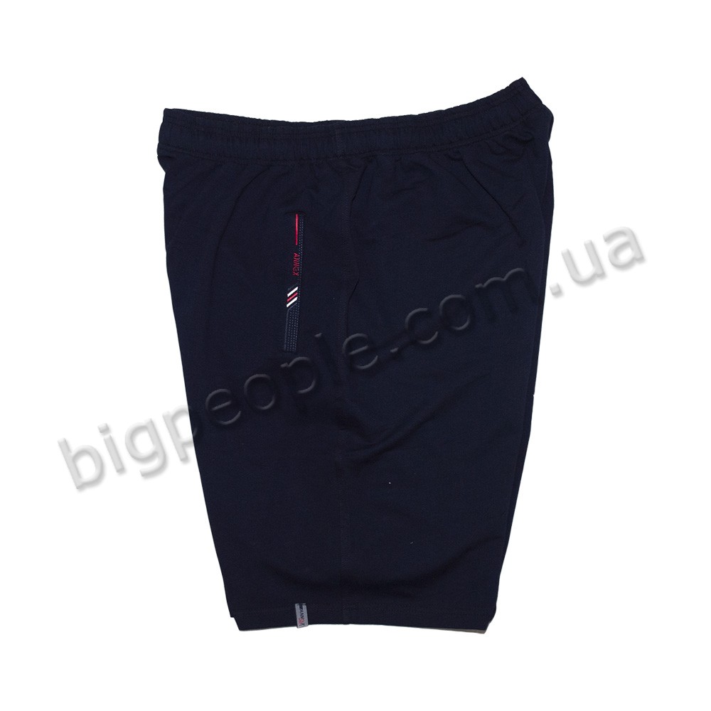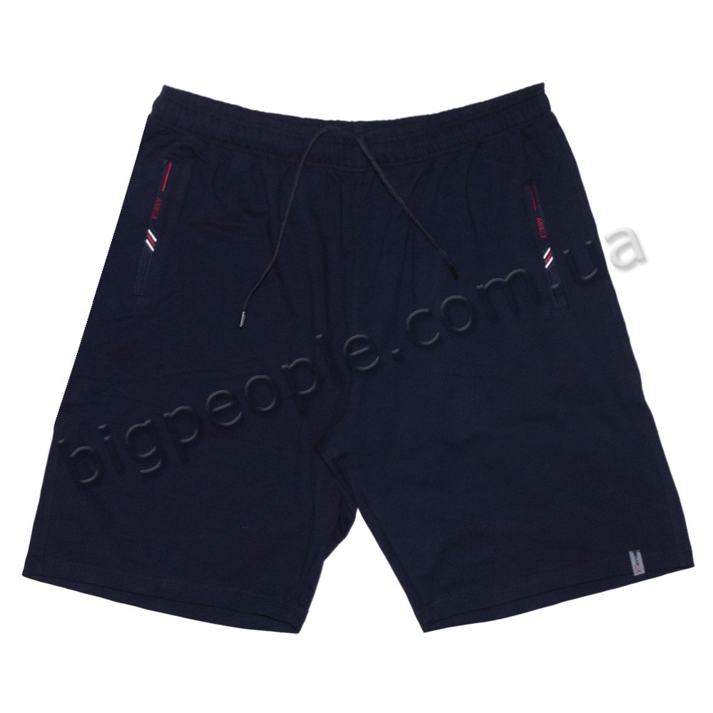 Трикотажні шорти ANNEX нестандартних розмірів для великих чоловіків. На виробі є дві кишені на блискавці з боків і одна кишеня ззаду. Виробництво Туреччина. Колір темно-синій. Склад: трикотаж (соттон 50%, поліестер 40%, эластан 10%.).