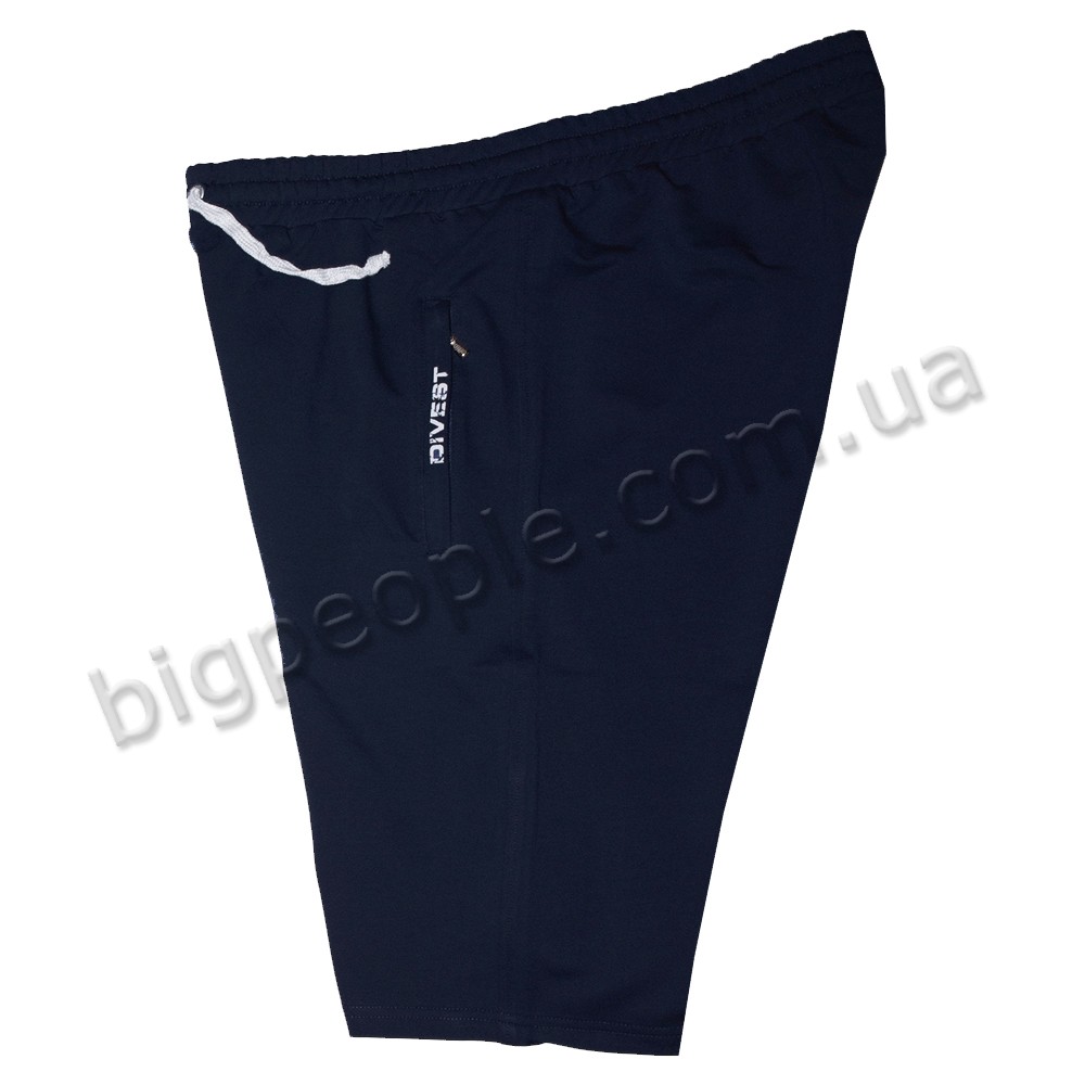 Трикотажні шорти DIVEST для великих чоловіків. На шортах є дві кишені з боків і одна кишеня ззаду. Виробництво Туреччина. Колір темно-синій. Склад: трикотаж (соттон 70%, поліестер 30%).