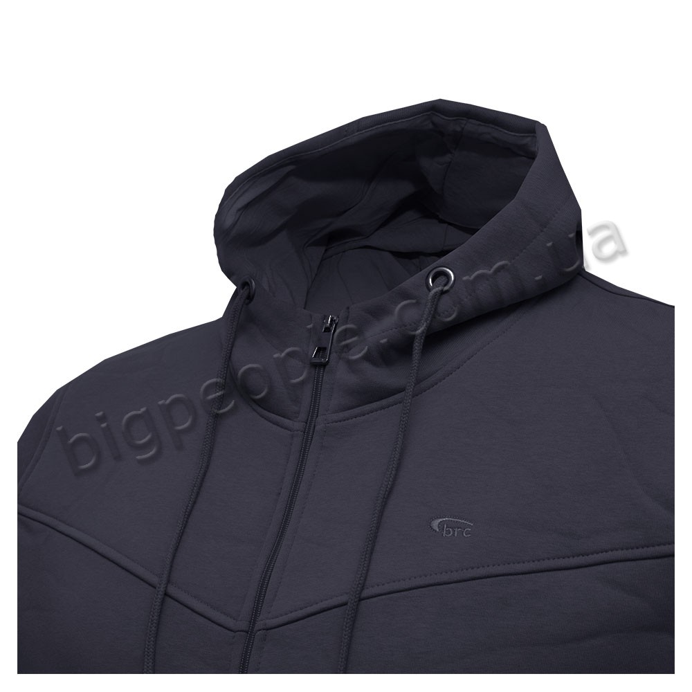 Чоловіча толстовка великого розміру BORCAN CLUB. Модель має високий комір, що закриває горло попереду. Застібається на блискавку. Внизу та на рукавах є гумка (манжети). Є капюшон. Склад cotton 100%. Трикотажна тепла толстовка, тканина по щільності – три нитки. Колір темно-синій.