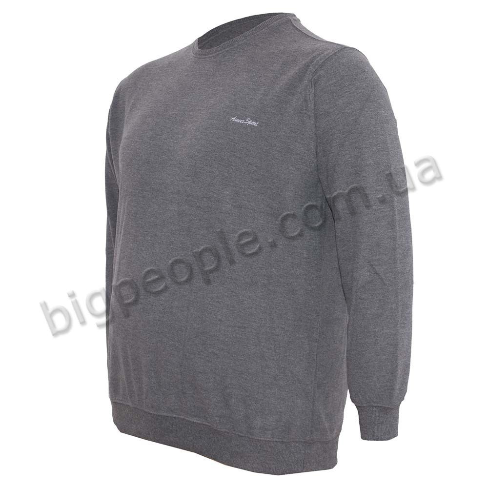 Сіра чоловіча толстовка великого розміру ANNEX. Тепла модель з тканини селаник. Комір напівкруглий. Низ на манжеті (гумки) внизу. Рукава на манжеті. Кишень немає. Виробництво Туреччини. Склад cotton (бавовна) 95%, еластан 5%.