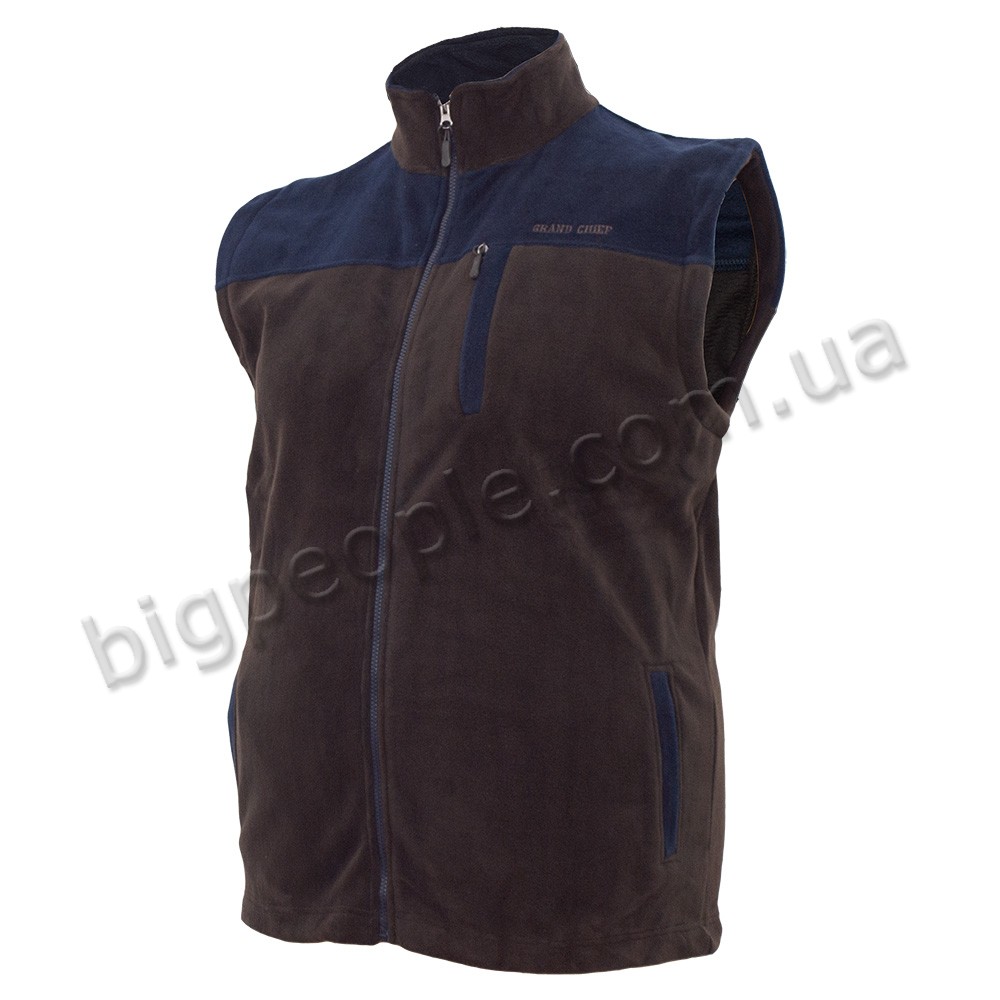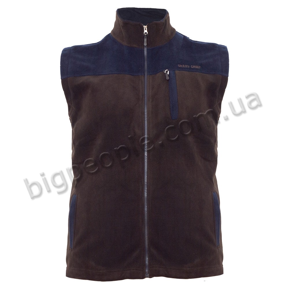 Теплий флісовий чоловічий жилет (безрукавка) великого розміру GRAND CHIEF. Колір - коричневий з синіми вставками. Можна носити як під куртку, так і в якості самостійного елемента гардероба. Матеріал 100% поліестер. Виробництво Туреччина.