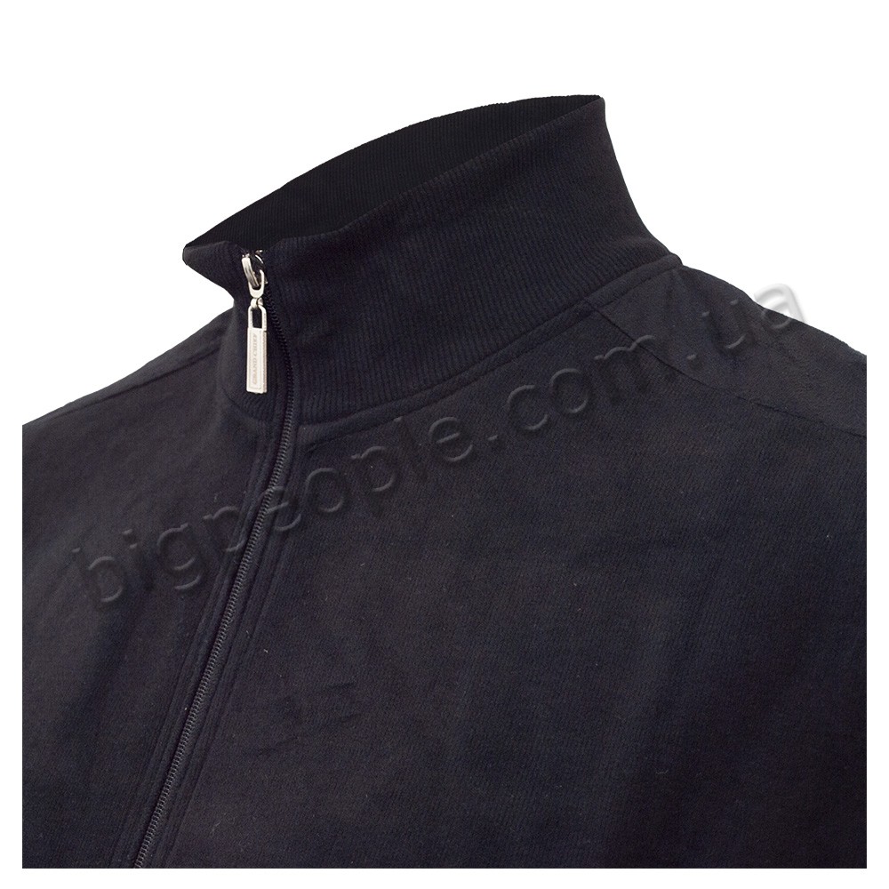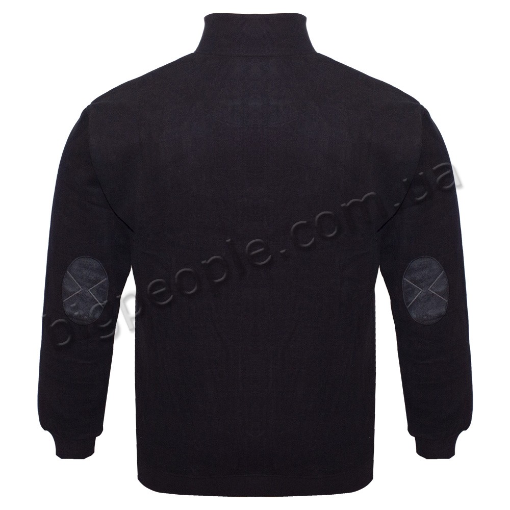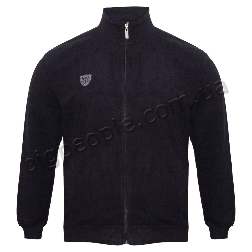 Чоловіча чорна утеплена кофта для великих чоловіків GRAND CHIEF, що застібається на блискавку. Модель з тканини середньої щільності. На виробі з боків дві кишені. На плечах декоративні вставки. На правій груді логотип бренду. Виробництво Туреччина. Склад: селанік - тепла м'яка Тканина, cotton (бавовна) 30%, поліестер 30%. Внизу моделі і на рукавах манжети. Колір чорний.