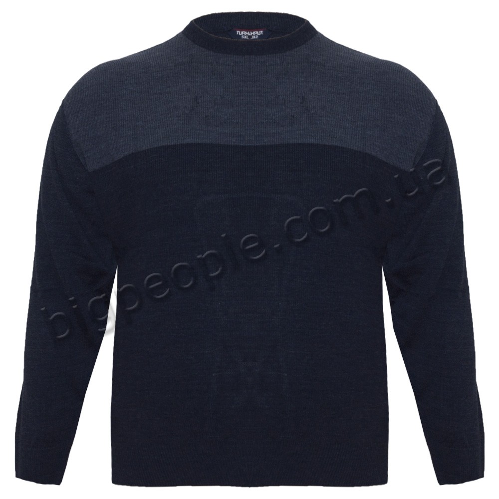 Темно-синій вовняний светр великих розмірів TURHAN для чоловіків. Светр середньої щільності, стандартний комір під горло. Вироблено в Туреччині. Кишень на виробі немає. Склад шерсть 50%, акрил 50%.