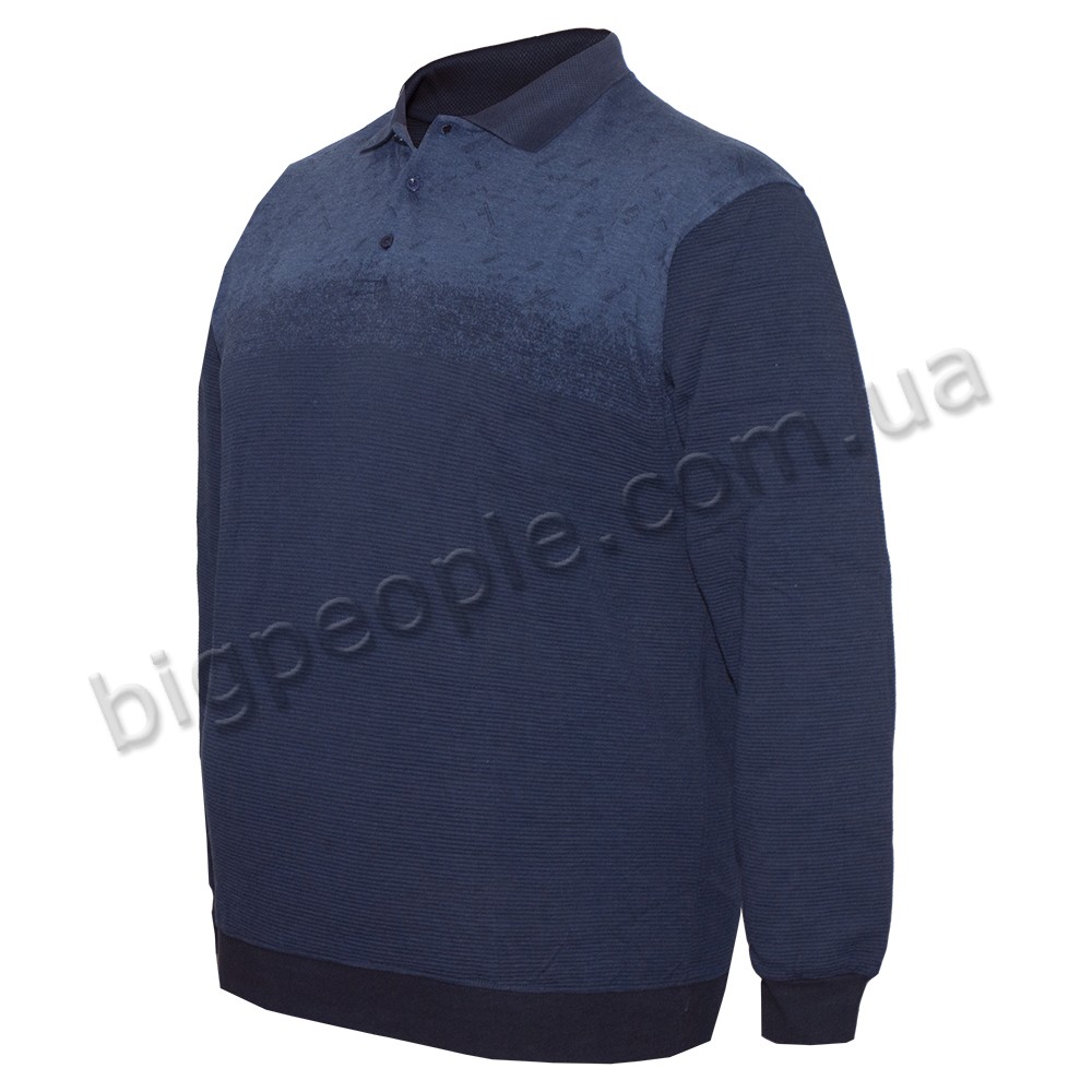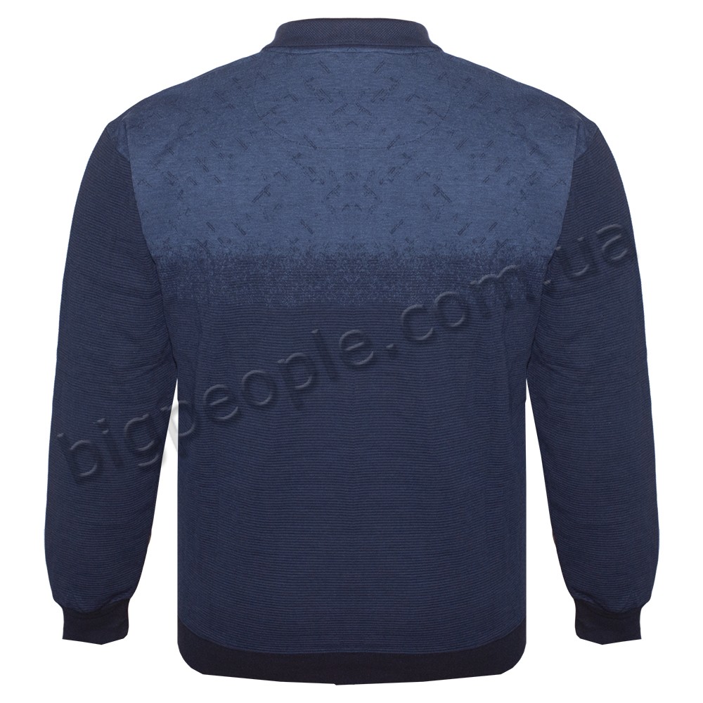 Чоловіча толстовка-polo середньої щільності для великих чоловіків GRAND CHIEF. Виробництво Туреччина. Склад cotton (бавовна) 70%, віскоза 30%. Внизу модель на манжеті, на рукавах манжети. Колір синій.