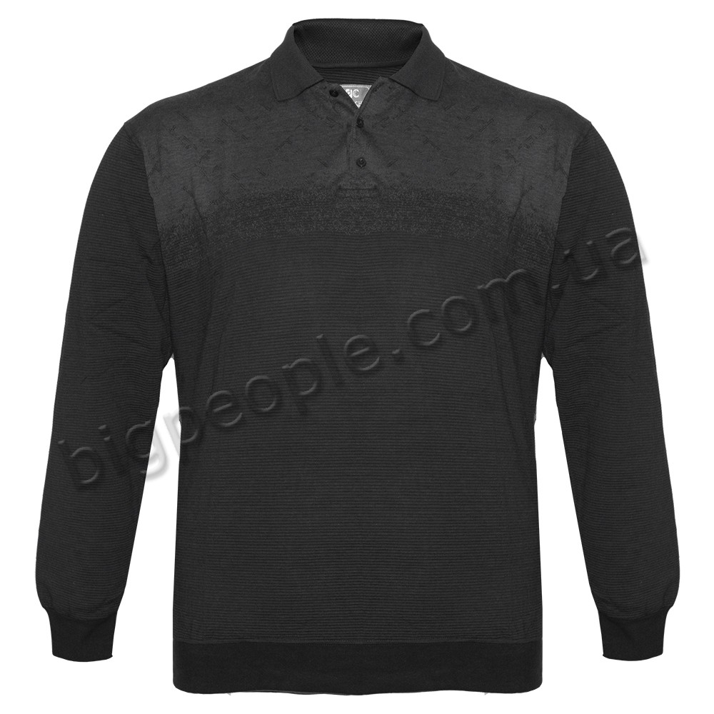 Чоловіча толстовка-polo середньої щільності для великих чоловіків GRAND CHIEF. Виробництво Туреччина. Склад cotton (бавовна) 70%, віскоза 30%. Внизу модель на манжеті, на рукавах манжети. Колір чорний.
