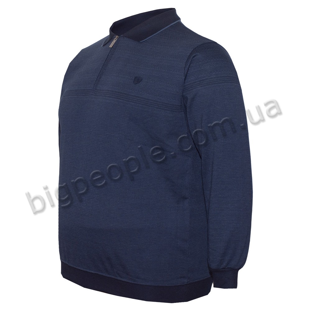 Синя толстовка для великих чоловіків ANNEX, виріб середньої щільності. Комір поло з блискавкою. Вироб на рукавах і внизу має манжети, на грудях невеликий логотип виробника. Колір індиго. Темно-сині манжети. Фабрика Туреччини. Склад cotton (бавовна) 100%.