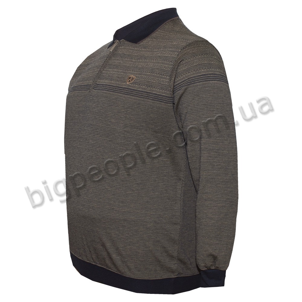 Коричнева толстовка для великих чоловіків ANNEX, виріб середньої щільності. Комір поло з блискавкою. Вироб на рукавах і внизу має манжети, на грудях невеликий логотип виробника. Колір vision. Темно-сині манжети. Фабрика Туреччини. Склад cotton (бавовна) 100%.