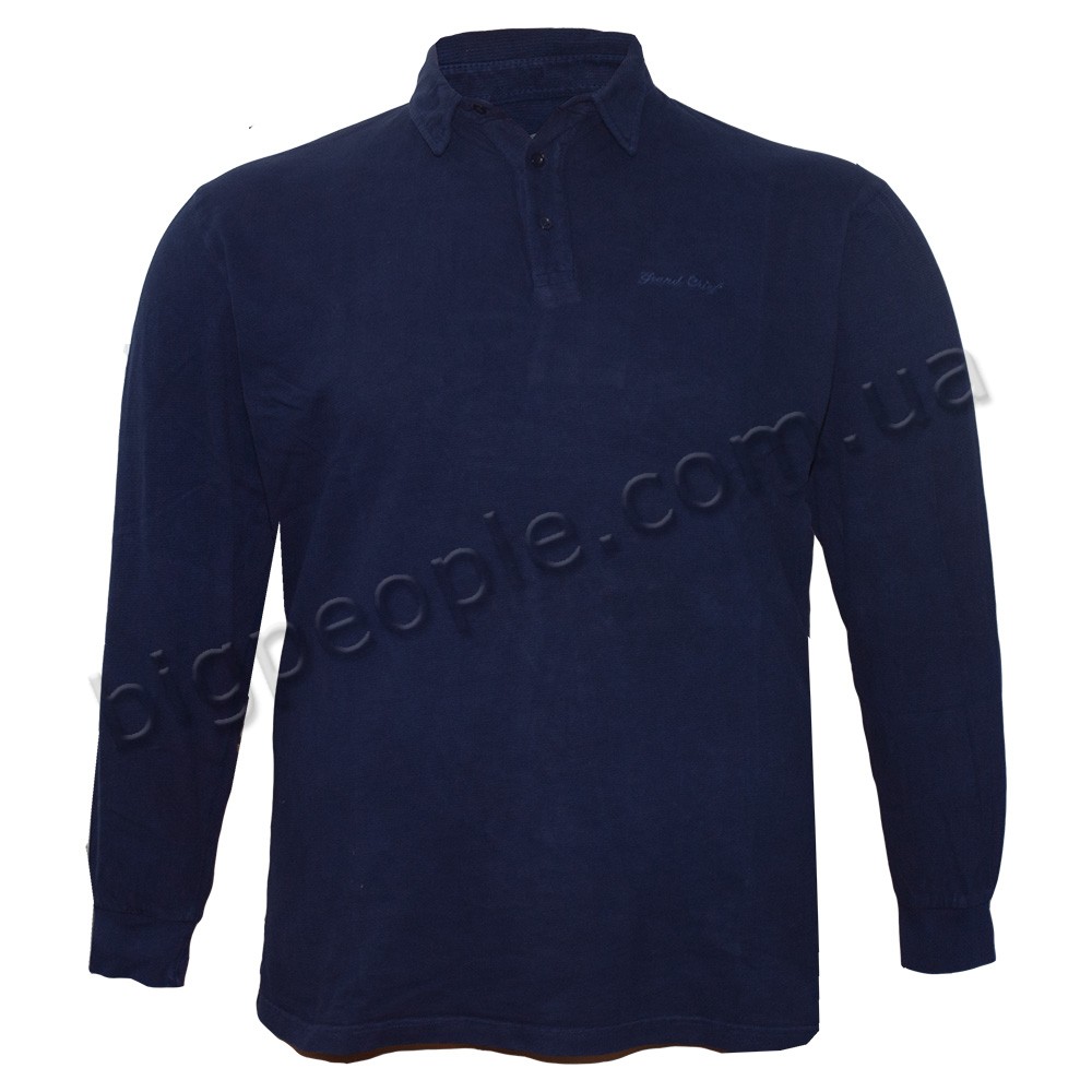 Чоловіча толстовка-polo середньої щільності для великих чоловіків GRAND CHIEF. На виробі кишень немає. Виварена тканина "варенка", склад: cotton (бавовна) 100%. Виробництво Туреччина. Внизу модель пряма, на рукавах манжети. Колір темно-синій.