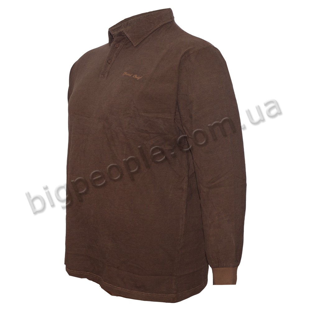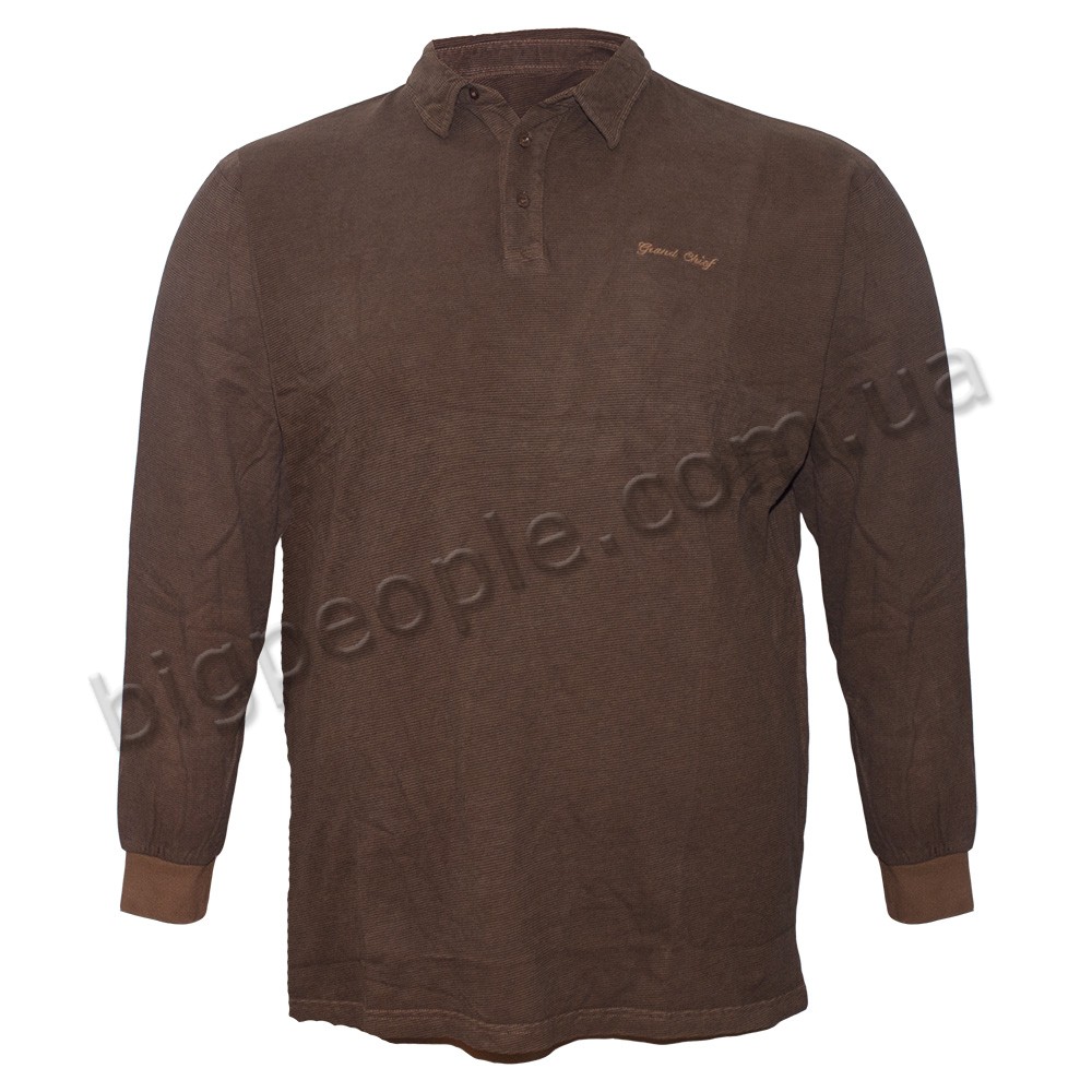 Чоловіча толстовка-polo середньої щільності для великих чоловіків GRAND CHIEF. На виробі кишень немає. Виварена тканина "варенка", склад: cotton (бавовна) 100%. Виробництво Туреччина. Внизу модель пряма, на рукавах манжети. Колір коричневий.