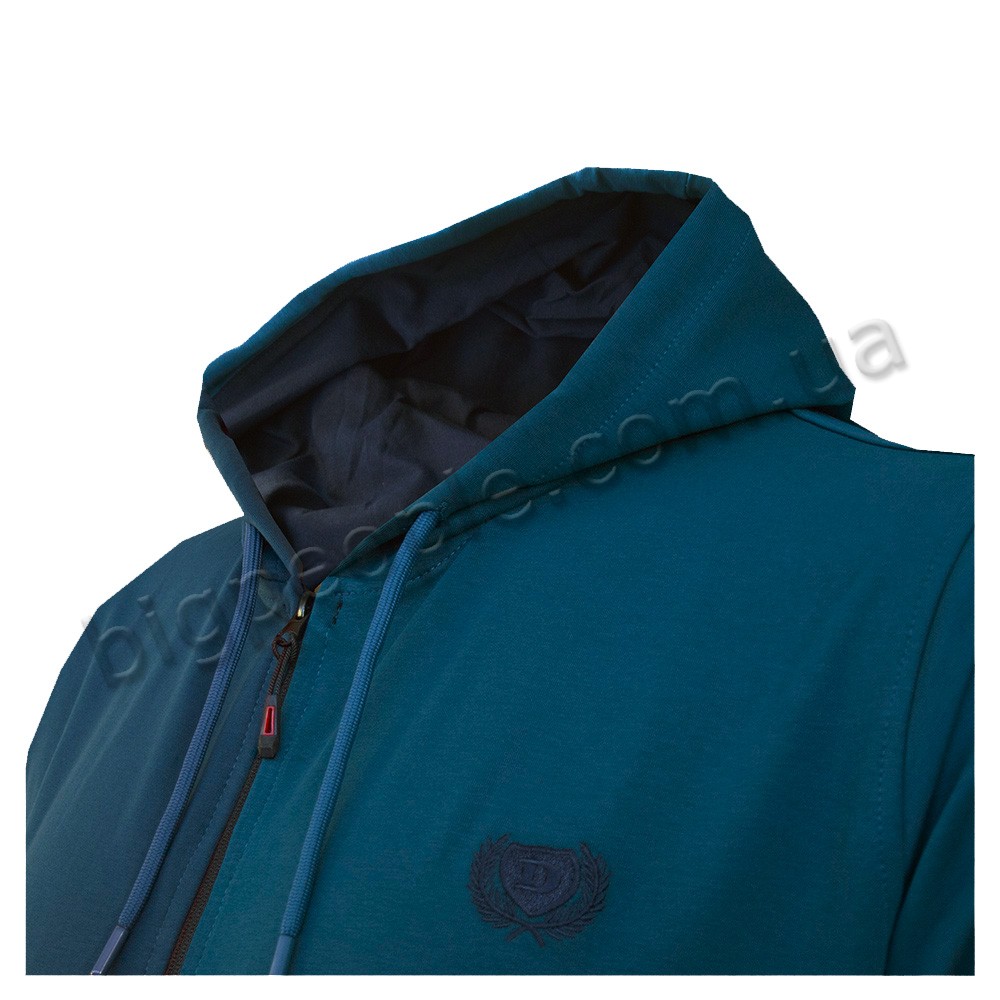 Тонка чоловіча бірюзова толстовка DEKONS. Застібається на блискавку. Манжет внизу та на рукавах. На грудях є емблема. Є каптур. Каптур не відстібається. Склад cotton 100%. Трикотажна толстовка, тканина по щільносі дві нитки.