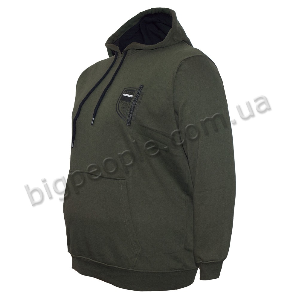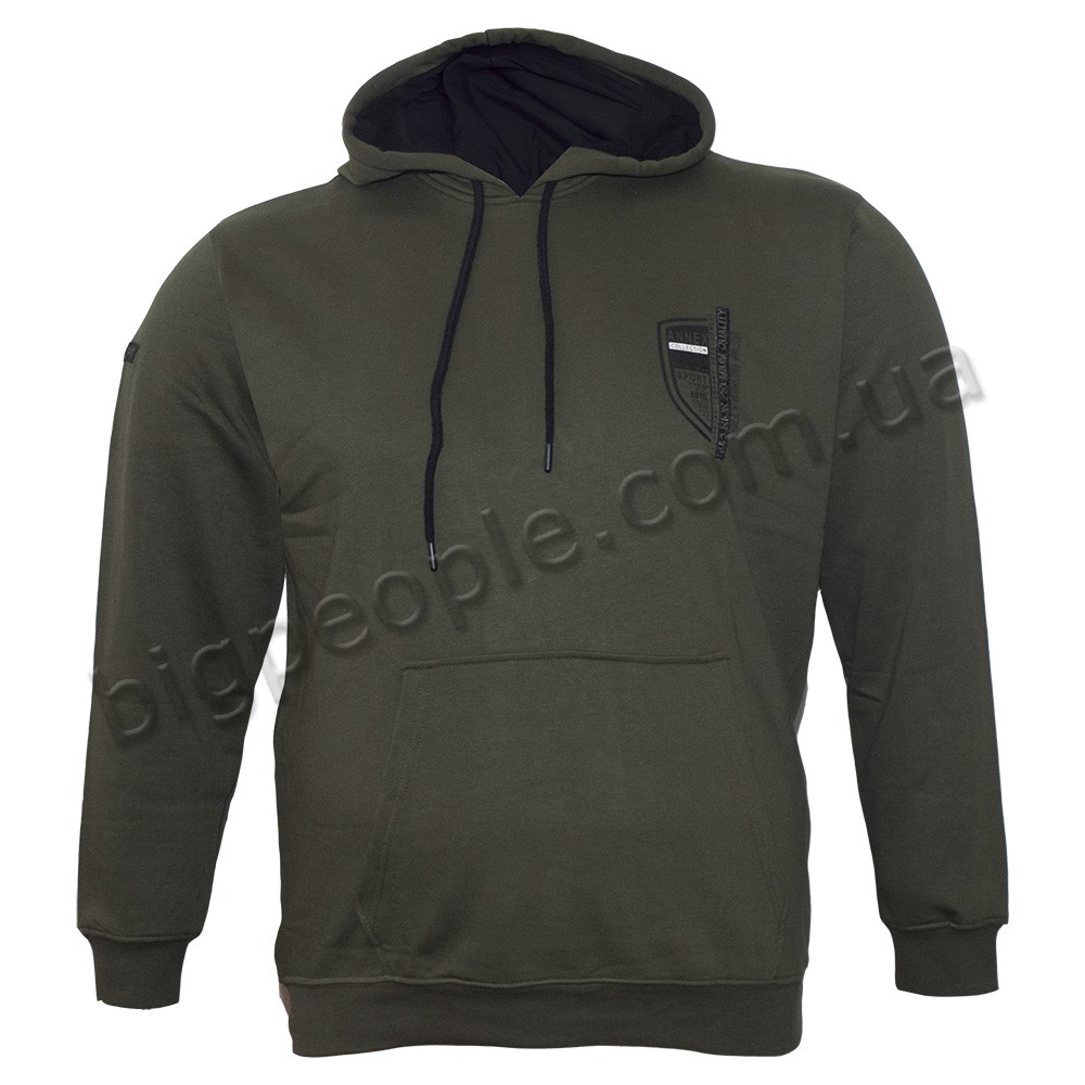 Чоловіче худі великого розміру ANNEX. На виробі внизу і на рукавах є гумка (манжет). Присутній капюшон. Склад cotton 100%. Трикотажна утеплена толстовка, тканина по щільності - дві нитки. Колір хакі.