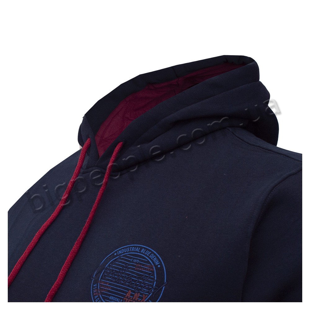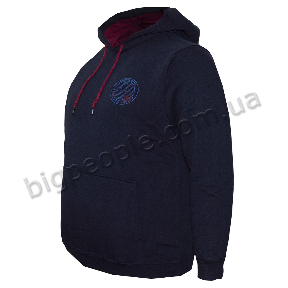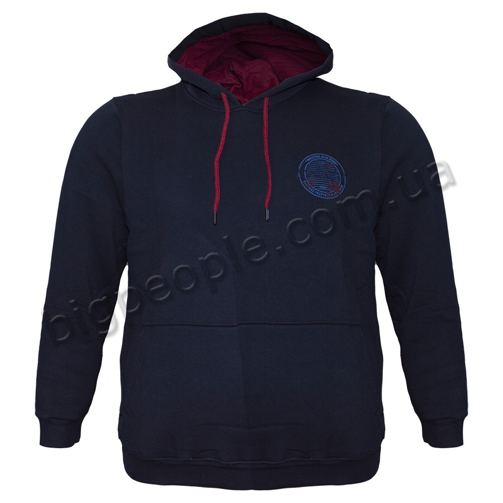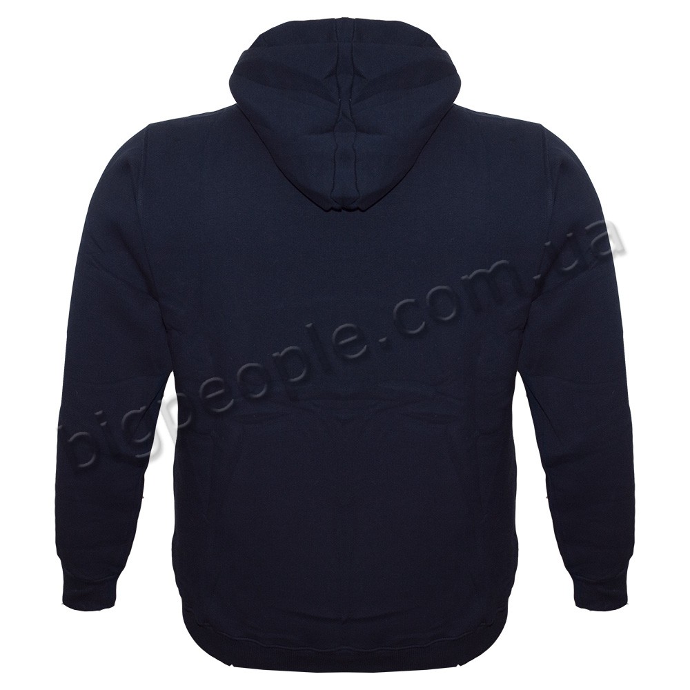 Чоловіча тепла толстовка великого розміру ANNEX. На виробі внизу та на рукавах є гумка (манжети). Є капюшон. Склад cotton 100%. Трикотажна тепла толстовка, тканина по щільності – три нитки з начьосом. Темно-синій колір.