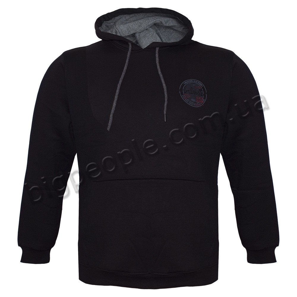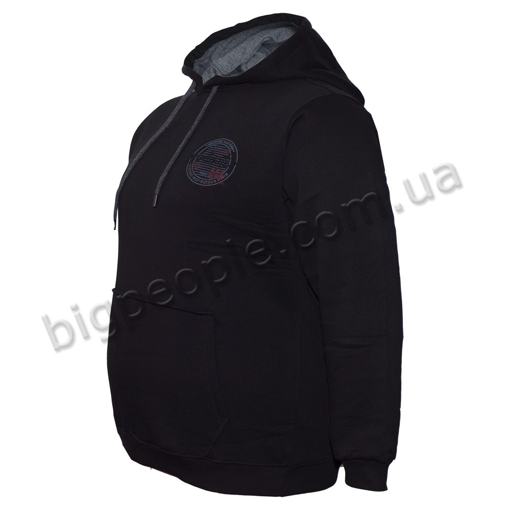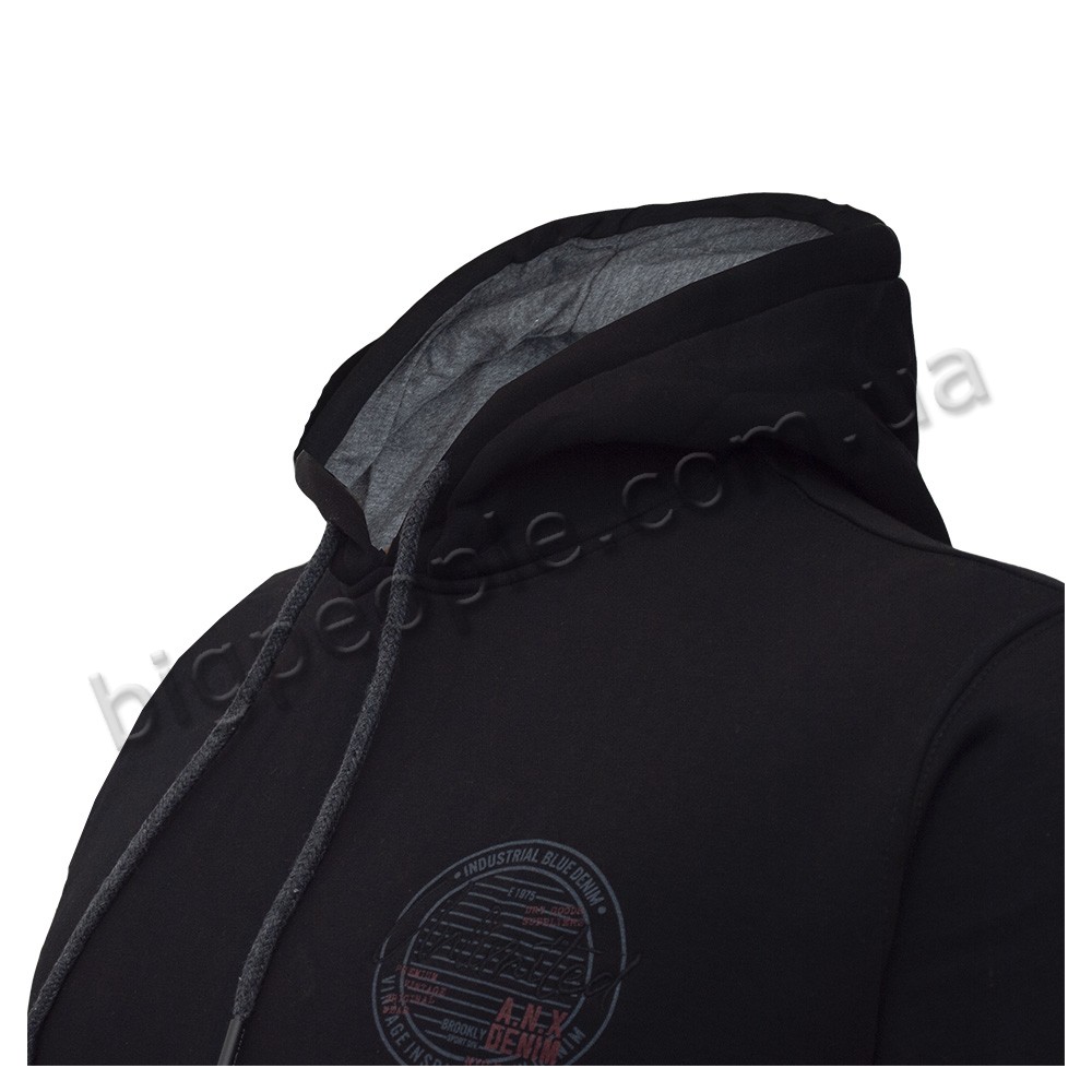 Чоловіча тепла толстовка великого розміру ANNEX. На виробі внизу та на рукавах є гумка (манжети). Є капюшон. Склад cotton 100%. Трикотажна тепла толстовка, тканина по щільності – три нитки з начьосом. Чорний колір.