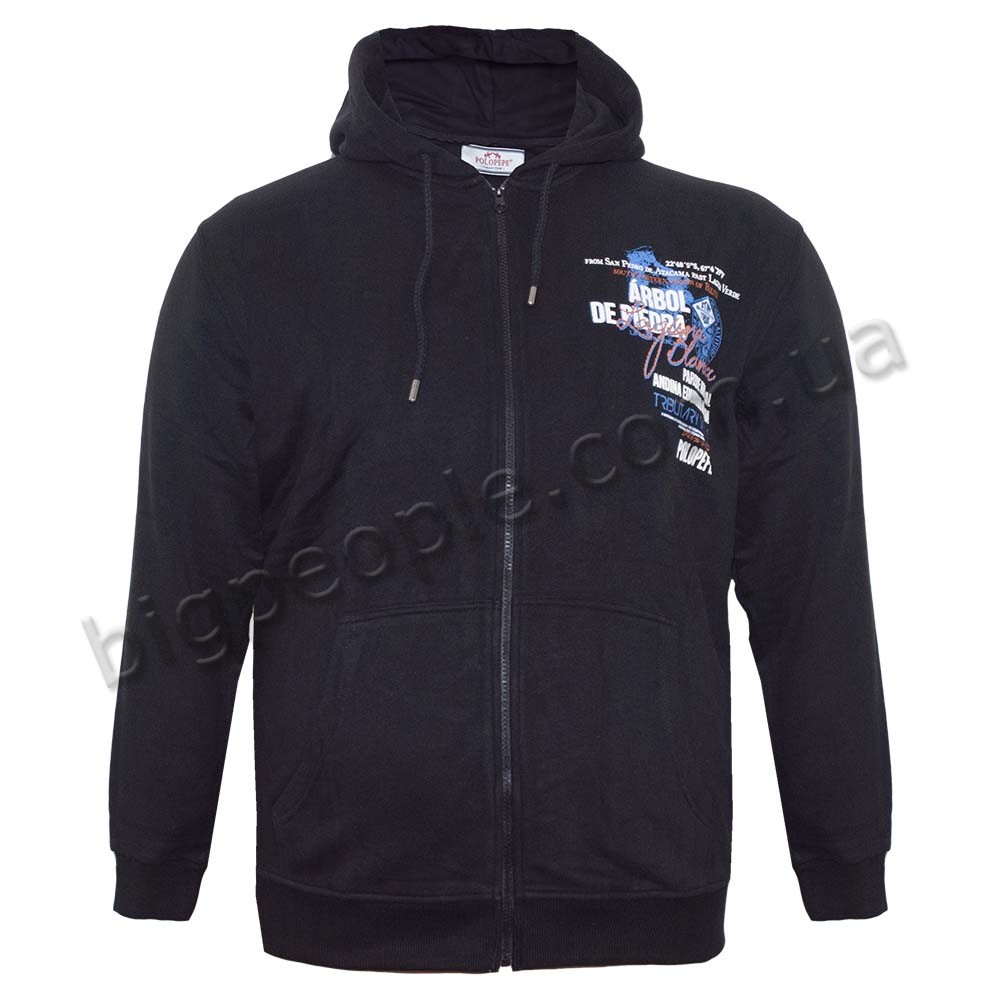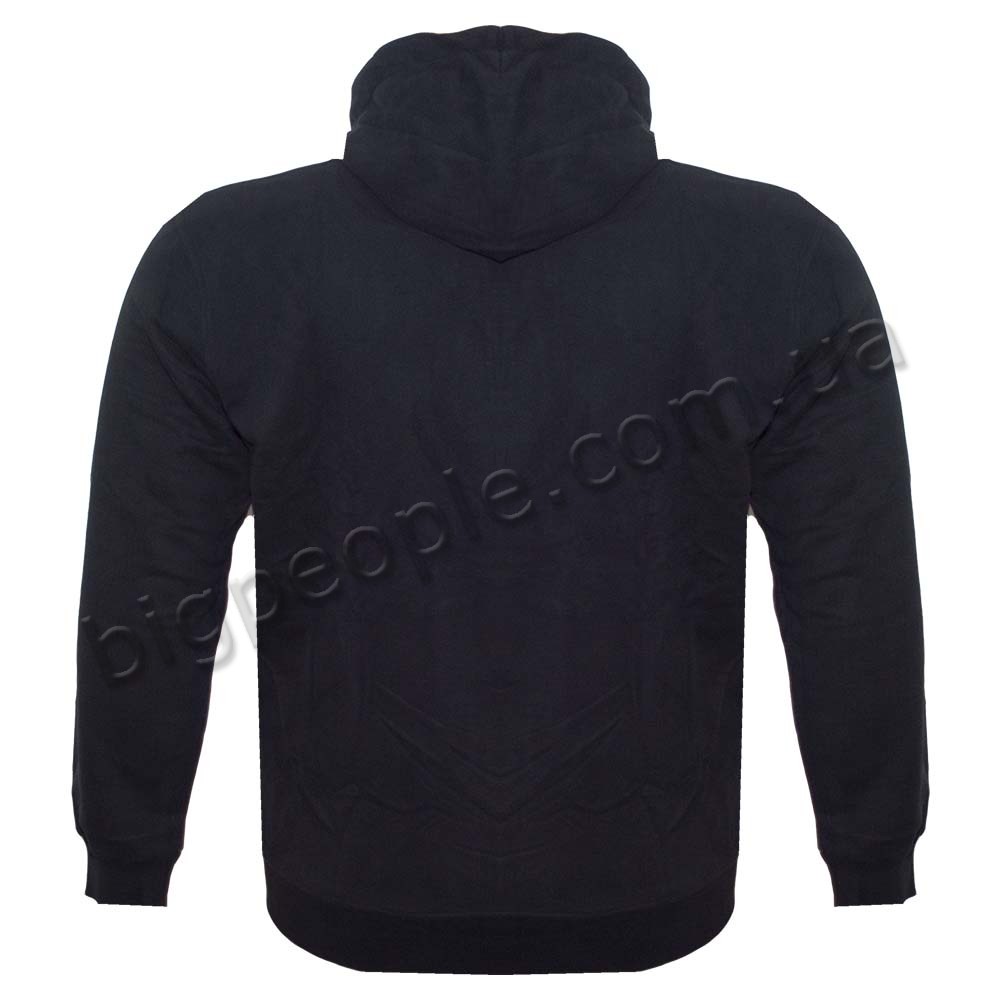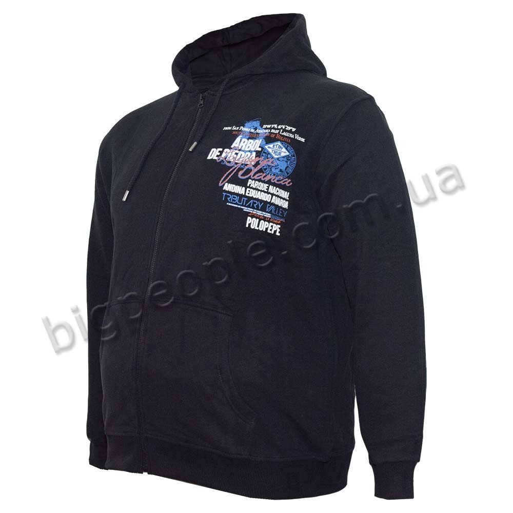 Чоловіча чорна толстовка великого розміру POLO PEPE (утеплена). Крій кишень-кенгурушка. Застібається на блискавку. Манжет внизу і на рукавах. На грудях присутній принт. Є капюшон. Капюшон не відстібається. Склад cotton 100%. Трикотажна утеплена толстовка, тканина без начісування з виворітного боку. Колір чорний.