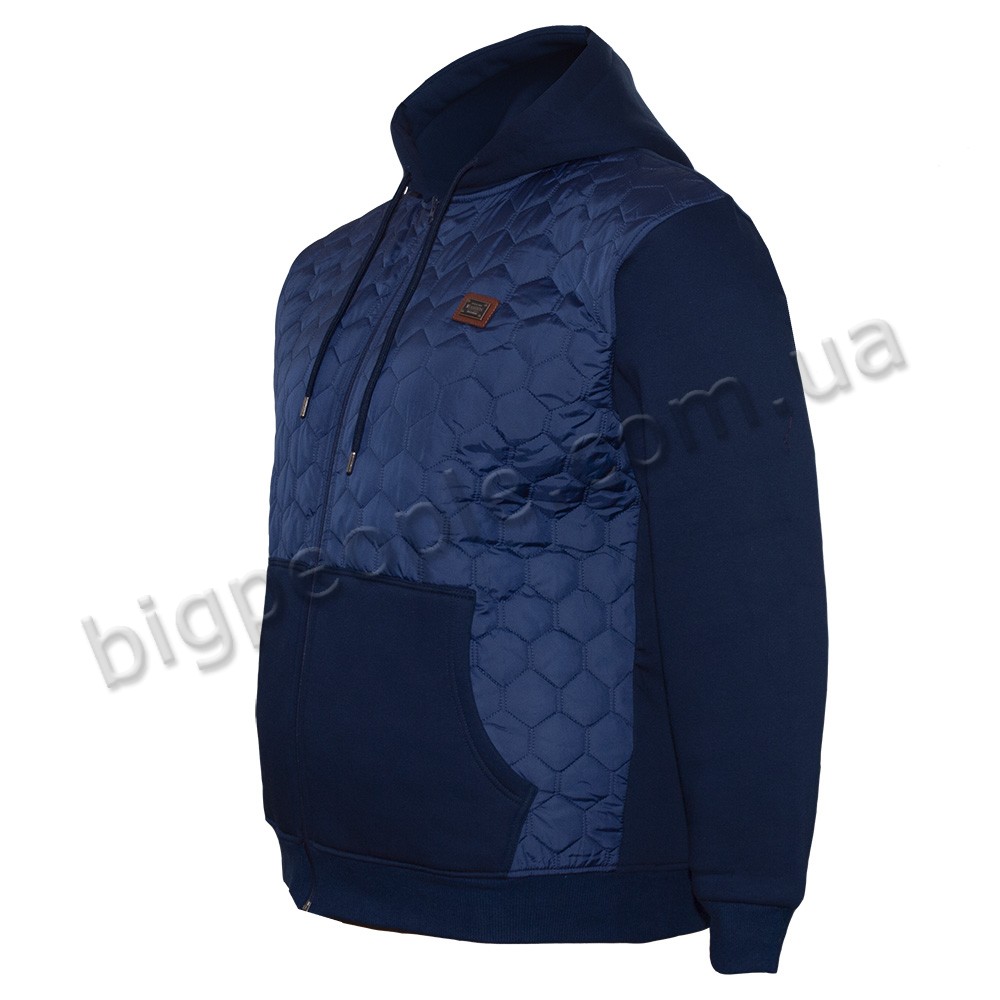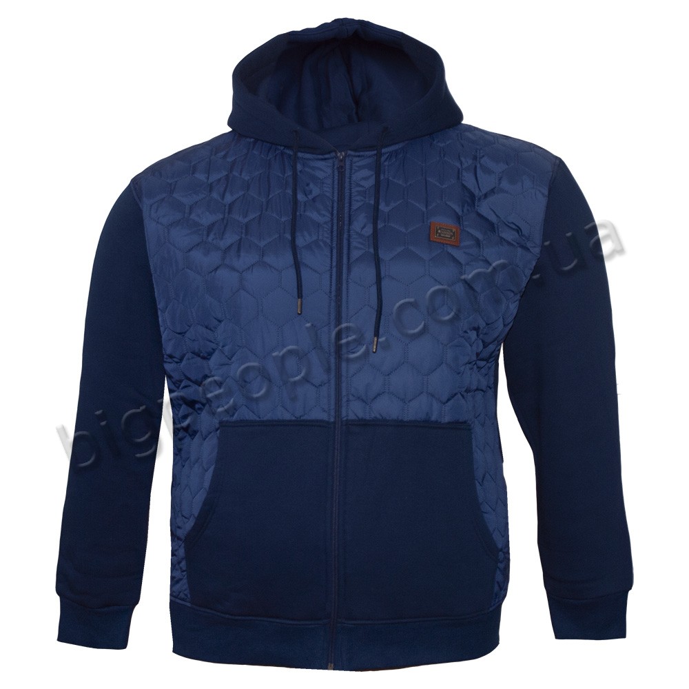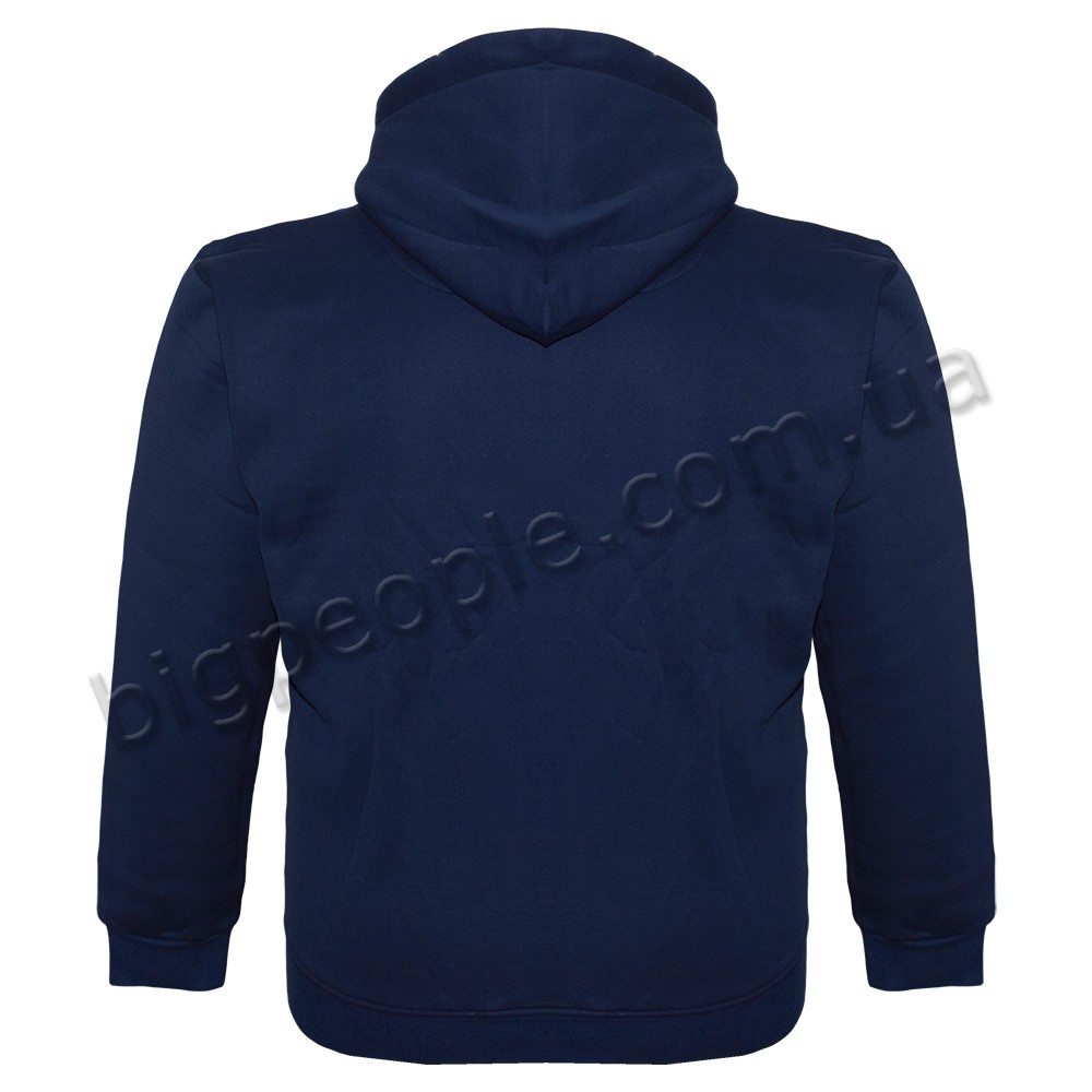 Толстовка чоловіча великого розміру POLO PEPE (утеплена). Крій кишень – кенгурушка. Застібається на повну блискавку. Манжета внизу та на рукавах. На грудях вставка із тканини мікрофібра (тонка плащівка). Є капюшон, який не відстібається. Склад cotton 70%, поліестер 30%. Трикотажний утеплений батник, тканина три нитки з начісуванням. Колір синій.