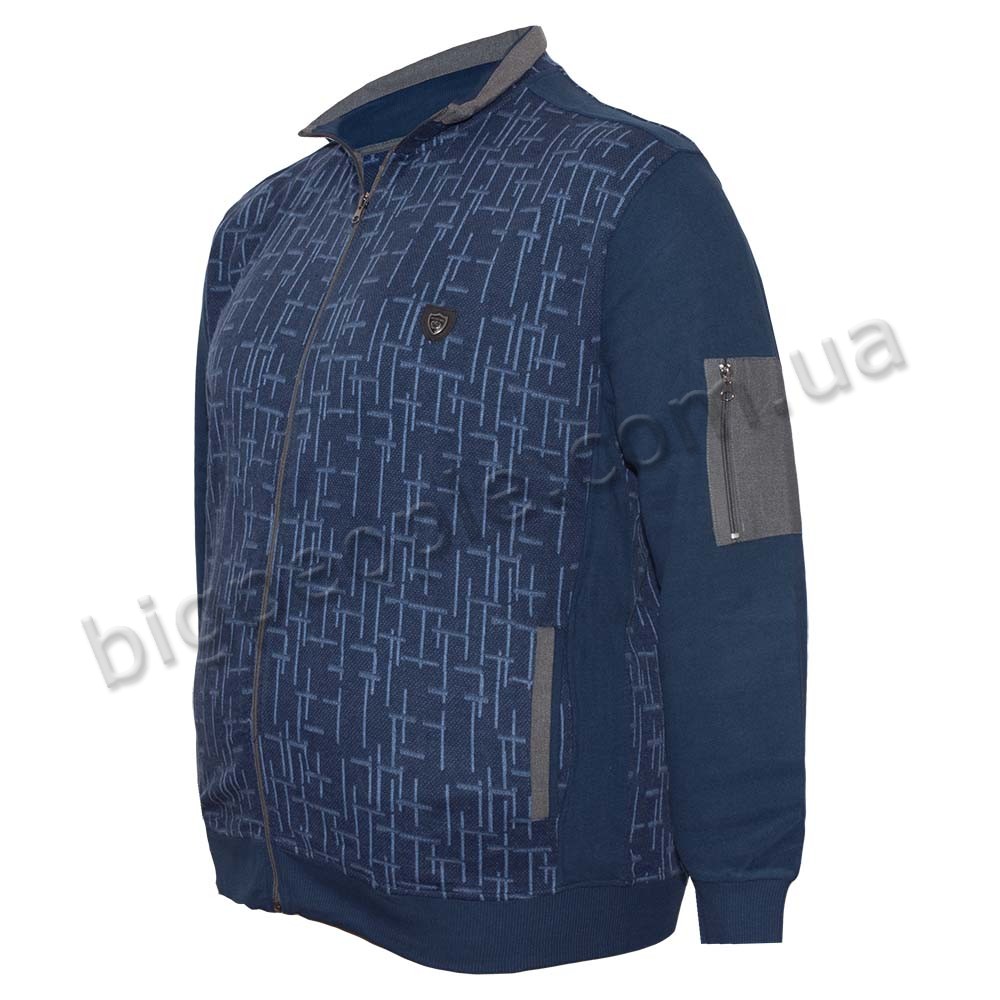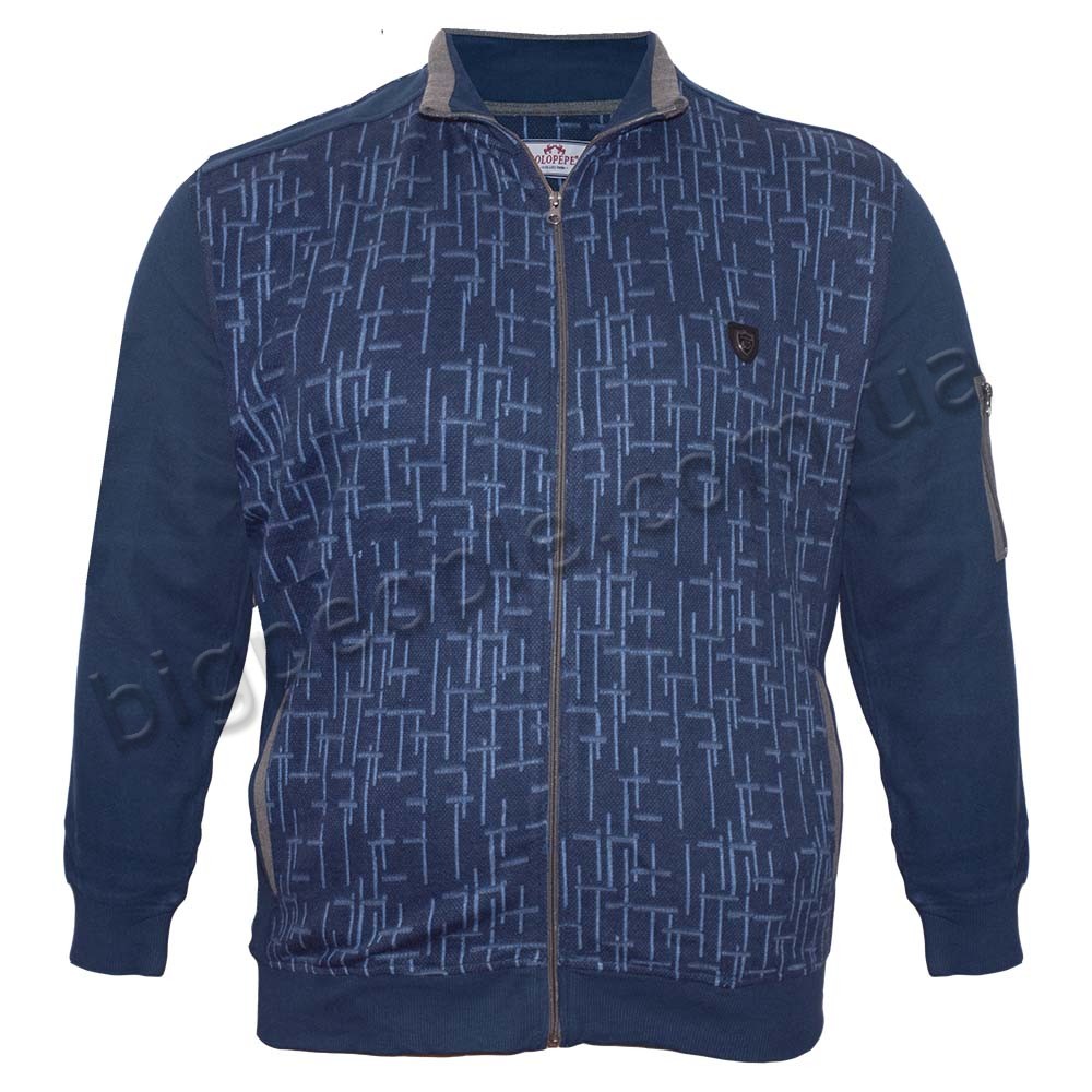 Чоловіча синя кофта великого розміру POLO PEPE (утеплена). Манжета внизу і на рукавах. На грудях присутня нашивка. Є три кишені - дві по боках і одна на рукаві. Склад cotton 100%. Трикотажна утеплена кофта, тканина середньої щильності. Колір синій.