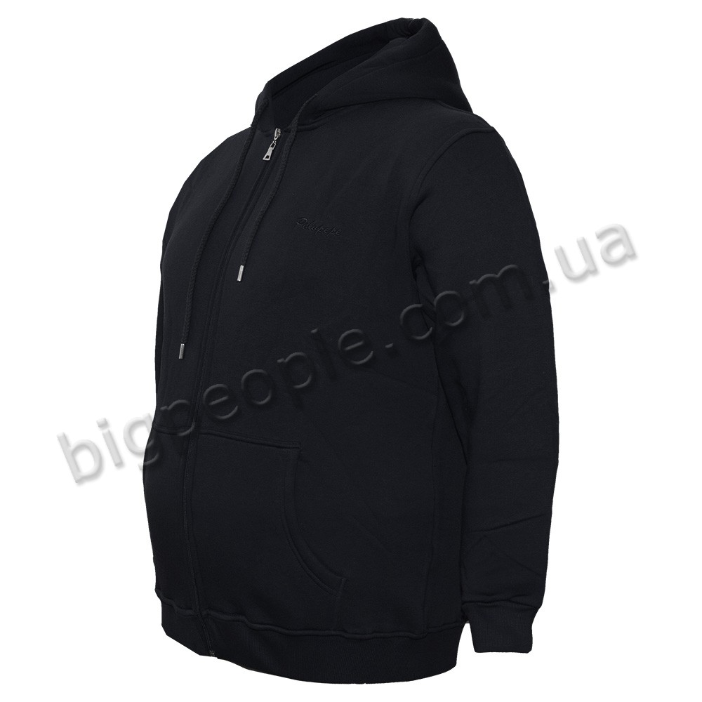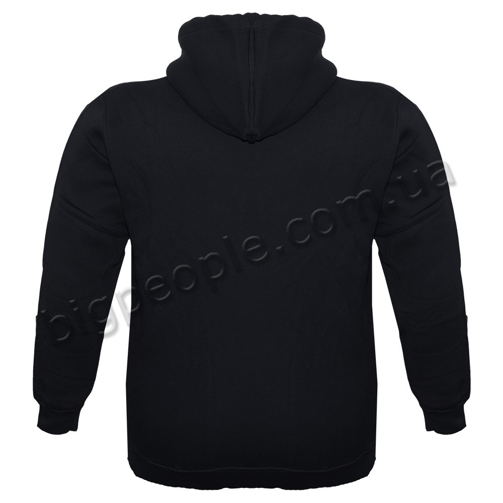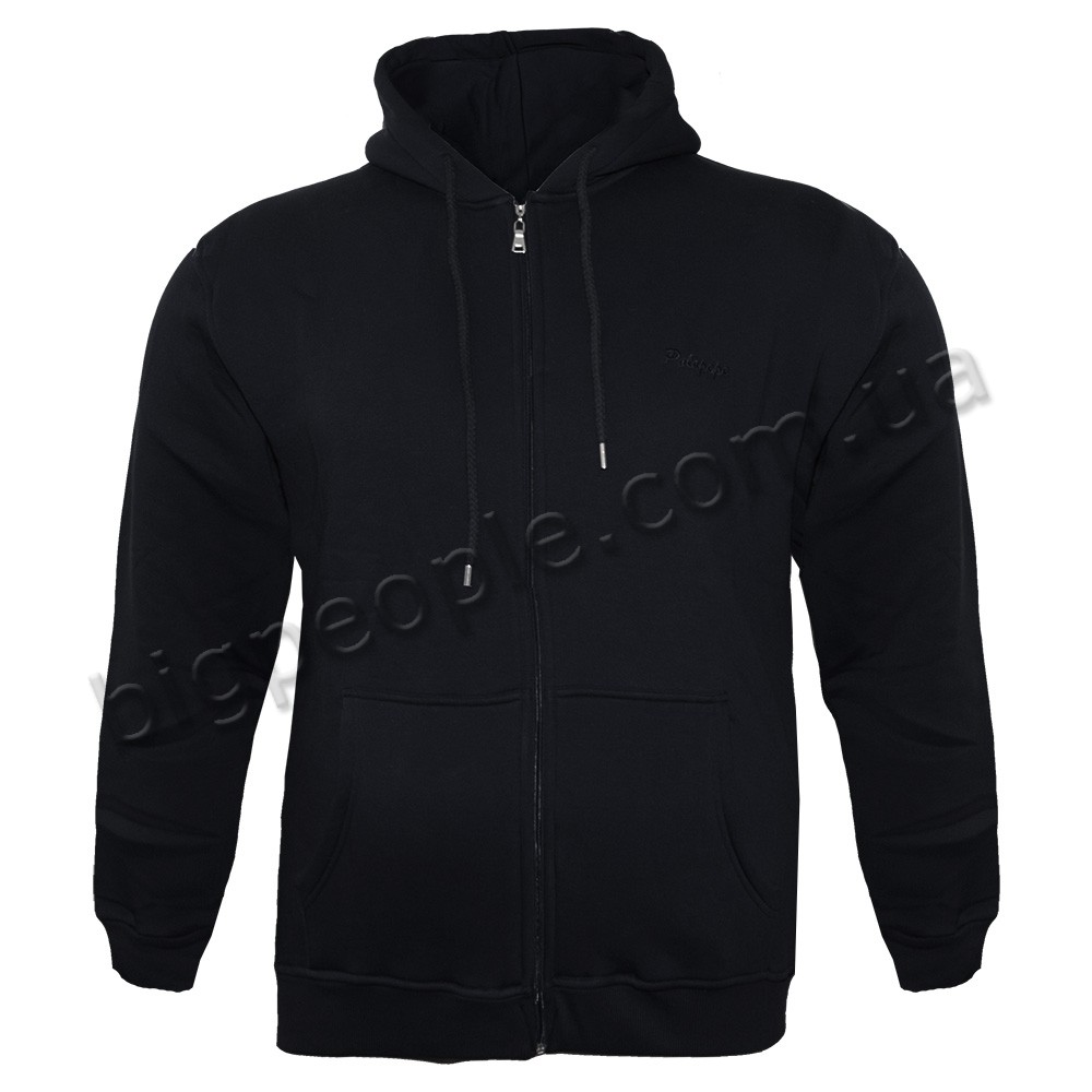 Чоловічий чорний батник великого розміру POLO PEPE (утеплений). Крій кишень-кенгурушка. Застібається на блискавку. Манжета внизу і на рукавах. Однотонна модель, з невеликою вишивкою на грудях. Присутній капюшон. Капюшон не відстібається. Склад cotton 100%. Трикотажний утеплений батник з начьосом на внутрішній стороні, тканина три нитки. Колір чорний.